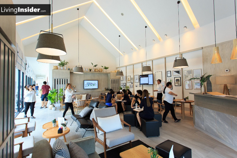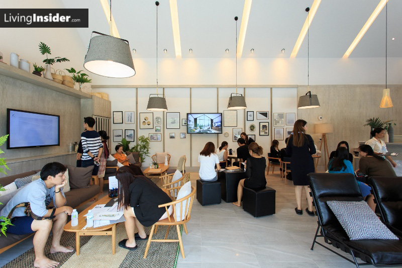 อย่างที่บอกว่านี่เป็นโครงการที่อาจเรียกได้ว่าใหญ่ที่สุดในย่าน รัชดา ห้วยขวาง แล้ว เพราะมีขนาดที่ดินกว่า 13 ไร่ ดังนั้นโครงการเลยทำสำนักงานขายแบบอลังการงานสร้างมากๆ แบบที่ว่าใครขับรถผ่านต้องมองและอยากเข้าไปดูกันทุกคน