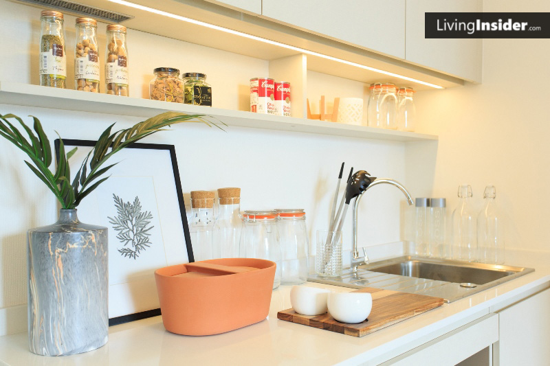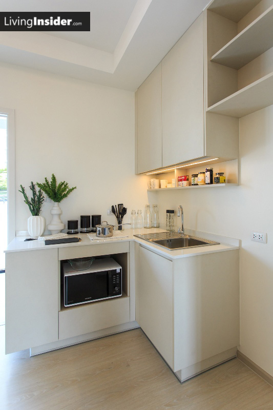 ลองมาดูห้องจริงกันเลยครับ เมื่อเข้ามาจะเจอชุดครัวเป็นตัวแอล ขนาดเหมาะสำหรับคนที่ชอบทำอาหารเลยครับ ใครทำอาหารทานบ่อยๆ แนะนำห้องแบบนี้เลยครับ