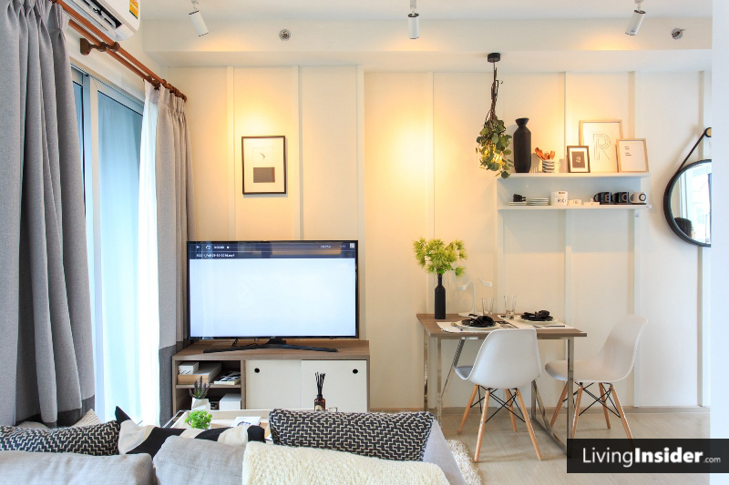 ห้องแบบนี้เหมาะอยู่กันคนสองคนและมีเพื่อนแวะมาหาบ่อยๆ สามารถนั่งกินอะไรกันในห้องสบายๆ เพราะพื้นที่ห้องนั่งเล่นค่อนข้างกว้าง สำหรับค่าเช่าห้องแบบนี้ประมาณ 18,000-19,000 บาทต่อเดือนสบายๆ