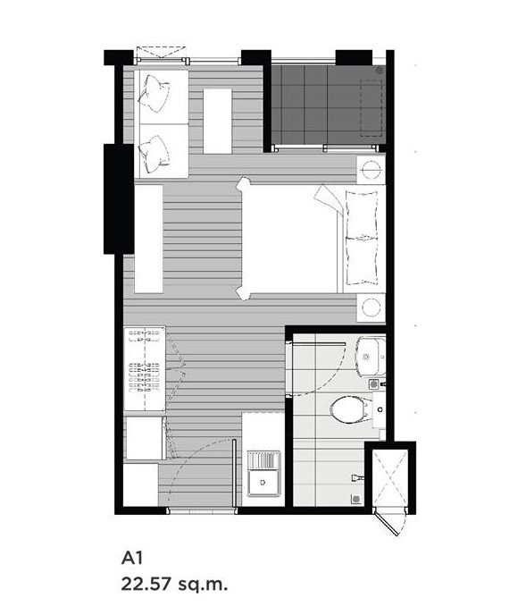 แบบ สตูดิโอ ขนาด 22.57 ตร.ม