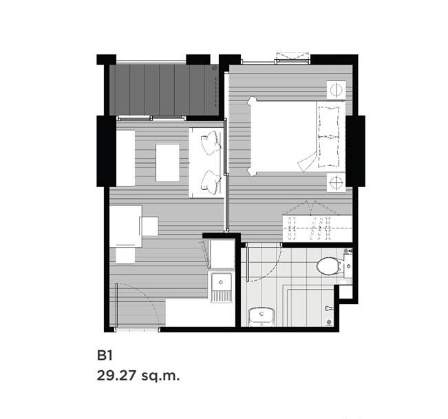แบบ 1 ห้องนอน ขนาด 29.27 ตร.ม