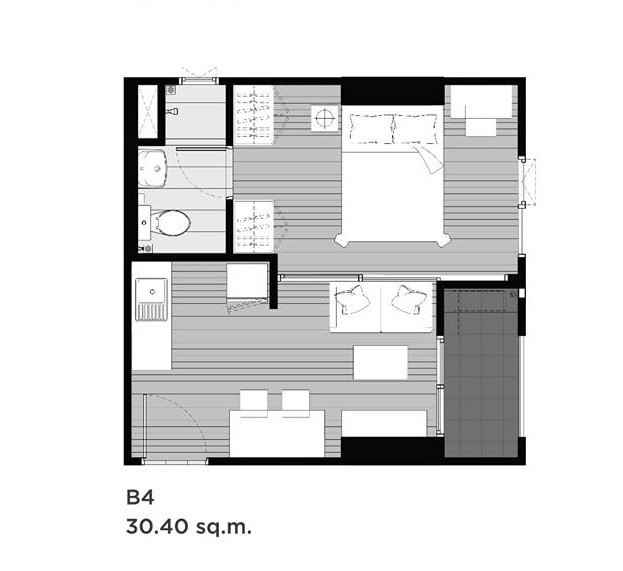 แบบ 1 ห้องนอน ขนาด 30.40 ตร.ม