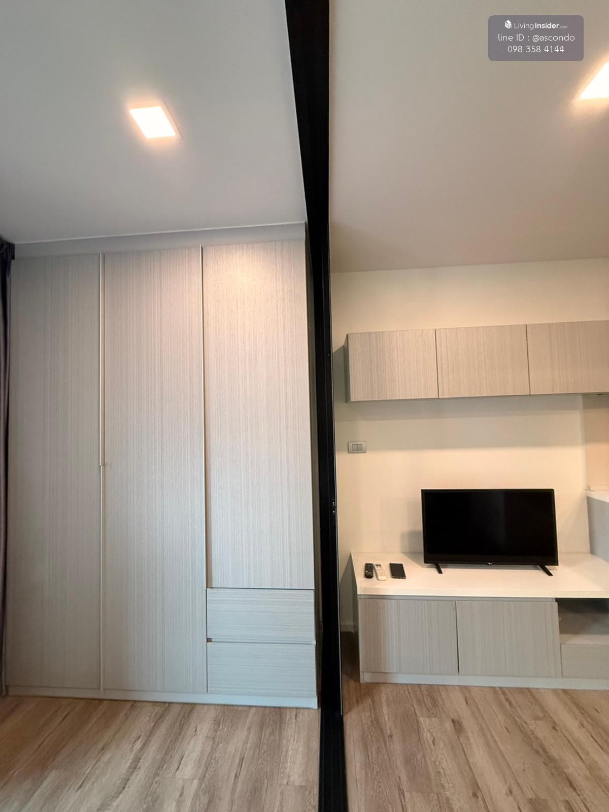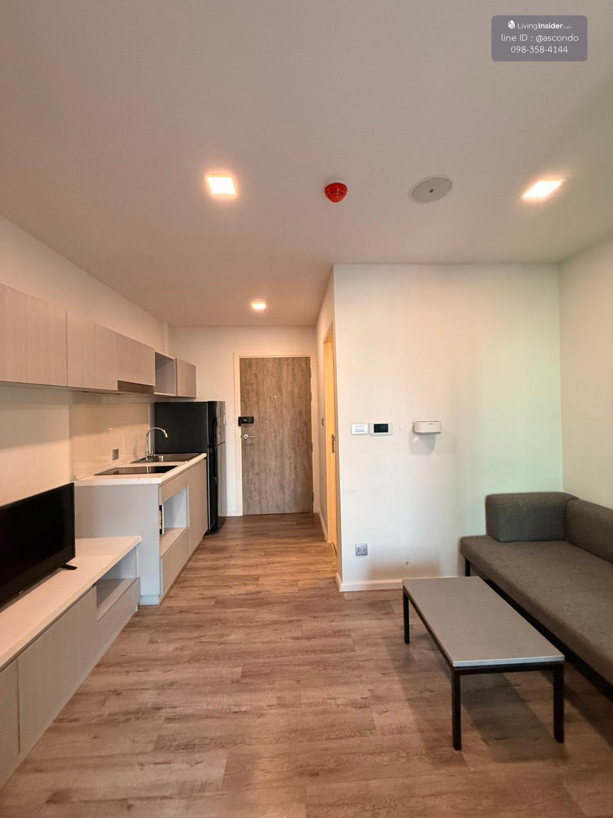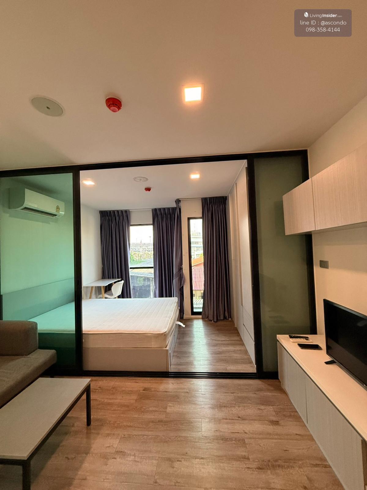 คอนโด โมดิซ อินเตอร์เชนจ์ ห้องขนาด 25 ตรม ชั้น 4 วิวดี พร้อมเครื่องใช้ไฟฟ้าเฟอร์นิเจอร์ครบ - แอร์ - ทีวี - ตู้เย็น - ไมโครเวฟ - เครื่องทำน้ำอุ่น - เตาปรุงอาหาร ราคาเช่า 8,900 บาท/เดือน สัญญาเช่า 12 เด