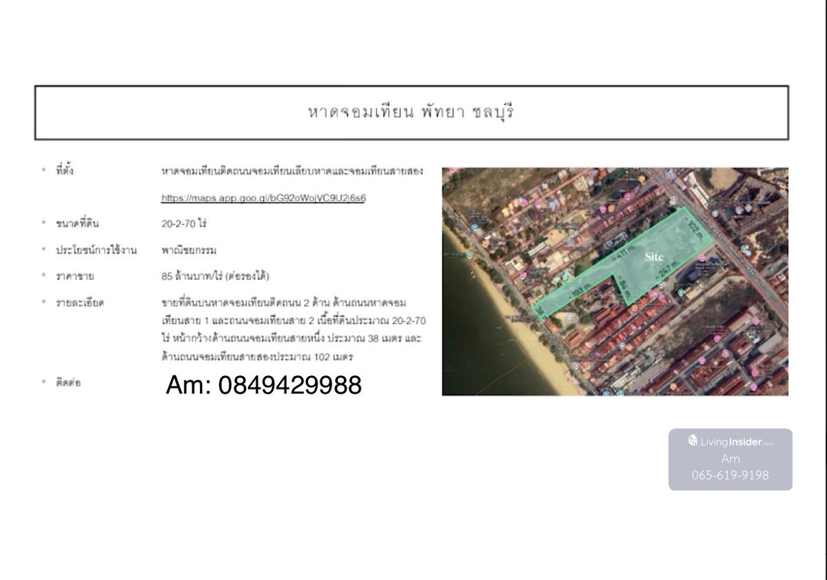 Land Jomtien beach front Pattaya for sell: 20-2-70 Rai Beach front connecting two streets super rare item!! Sell: 1,757,500,000 (85 million/ rai) - By the Jomtien beach front road sai 1 - Connect to Jomtien sai 2 road - 2 ways entrances and exit - Jomtien sai 1 land width 38m. - Jomtien sai 2 land width 102m. Suitable for landmark condo, hotel, mix used etc. Call/Line/Whatsapp/Wechat: Am คลิกเพื่อดูเบอร์โทรติดต่อ https://line.me/ti/p/_MXfrDHcUp #landforselljomtienbeach #landforselljomtienbeachfront #biglandforselljomtiensai1road #ขายที่หน้าหาดจอมเทียนสาย1พัทยา #ขายที่ดินติดหาดจอมเทียน #ขายที่ดินขนาดใหญ่ติดหาดจอมเทียนพัทยา #ขายที่ดินขนาดใหญ่ติดหาดพัทยา #ขายที่ดินหาดจอมเทียน #ขายที่ดินพัทยา #propertytown