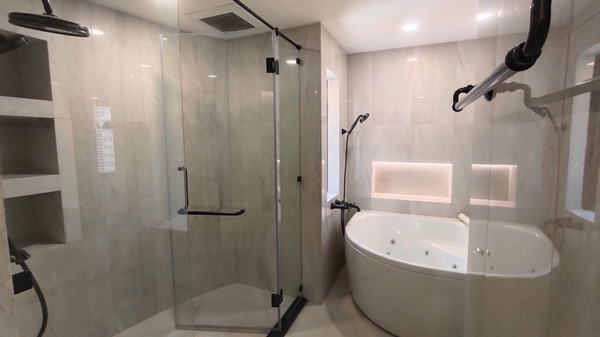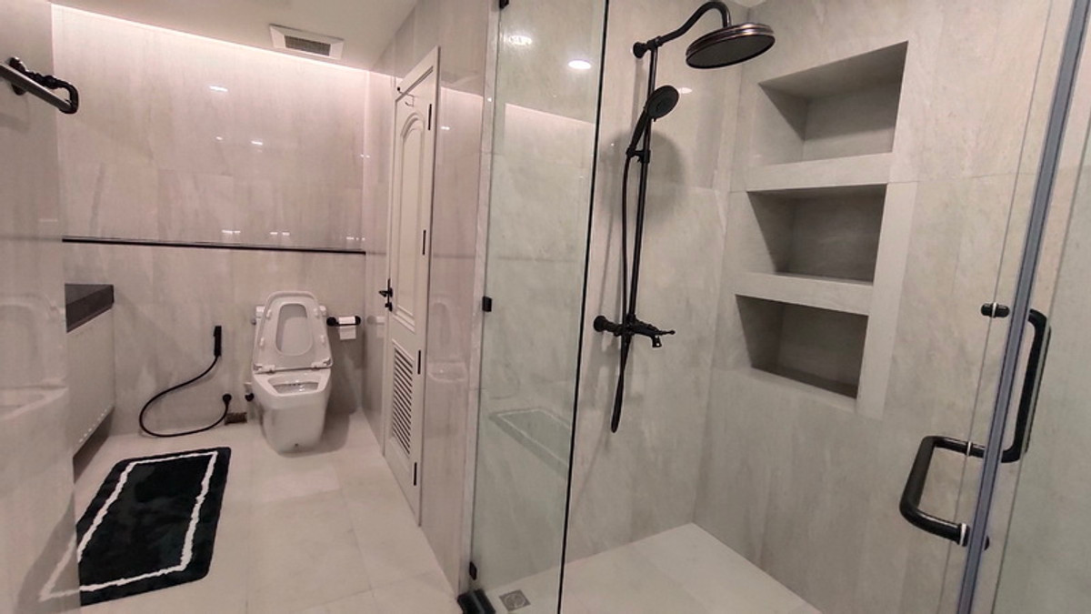 คอนโดขนาด 3 ห้อง 3 ห้องน้ำ 1 ห้องน้ำเล็ก ได้รับการปรับปรุงใหม่หมด อุปกรณ์และเครื่องใช้ไฟฟ้าคุณภาพเยี่ยม ห้องแต่งตัวสำหรับแขก และห้องแม่บ้านแยกเป็นสัดส่วนพร้อมห้องนอนและห้องน้ำ พร้อมสิ่งอำนวยความสะดวกใ