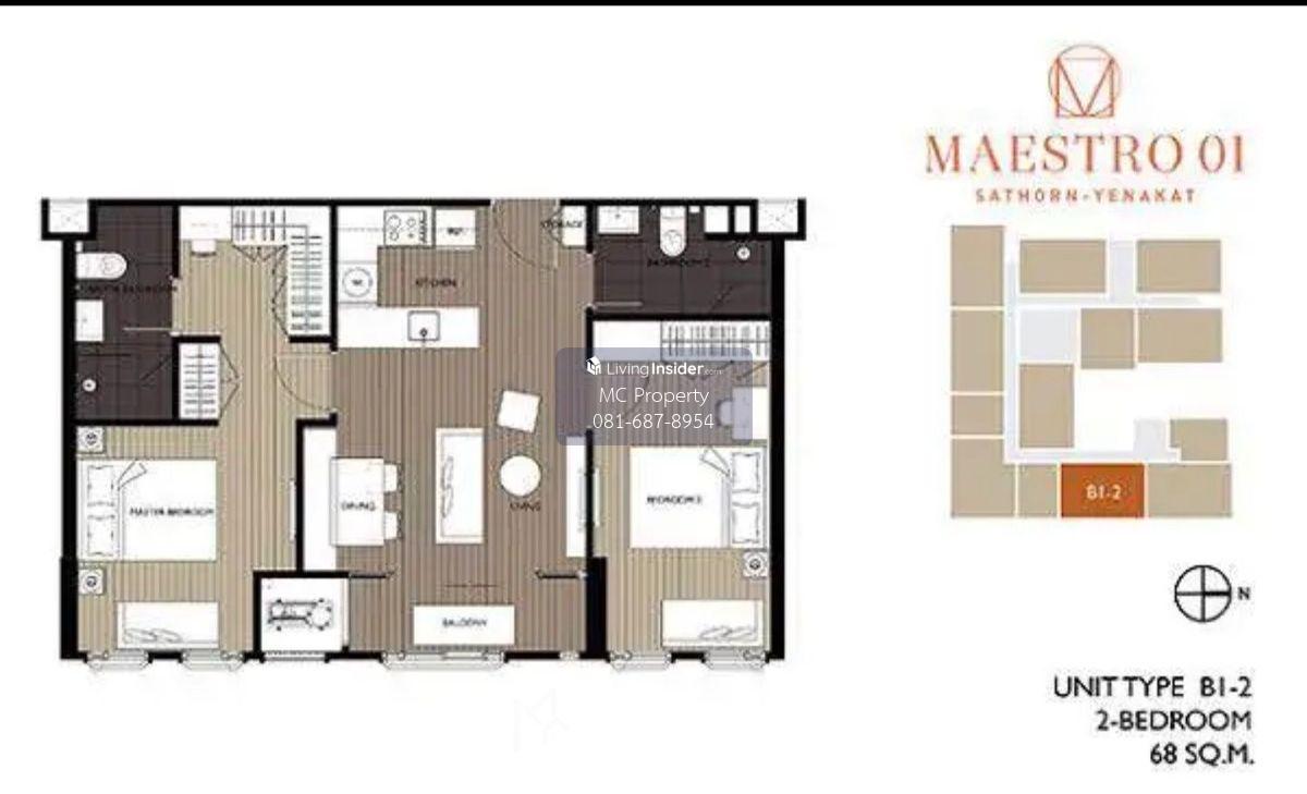 MASESTRO 01 SATHORN-YENAKAT คอนโดมิเนียม RISE LOD 2BEDROOM 68 SQM PET FIREDINE