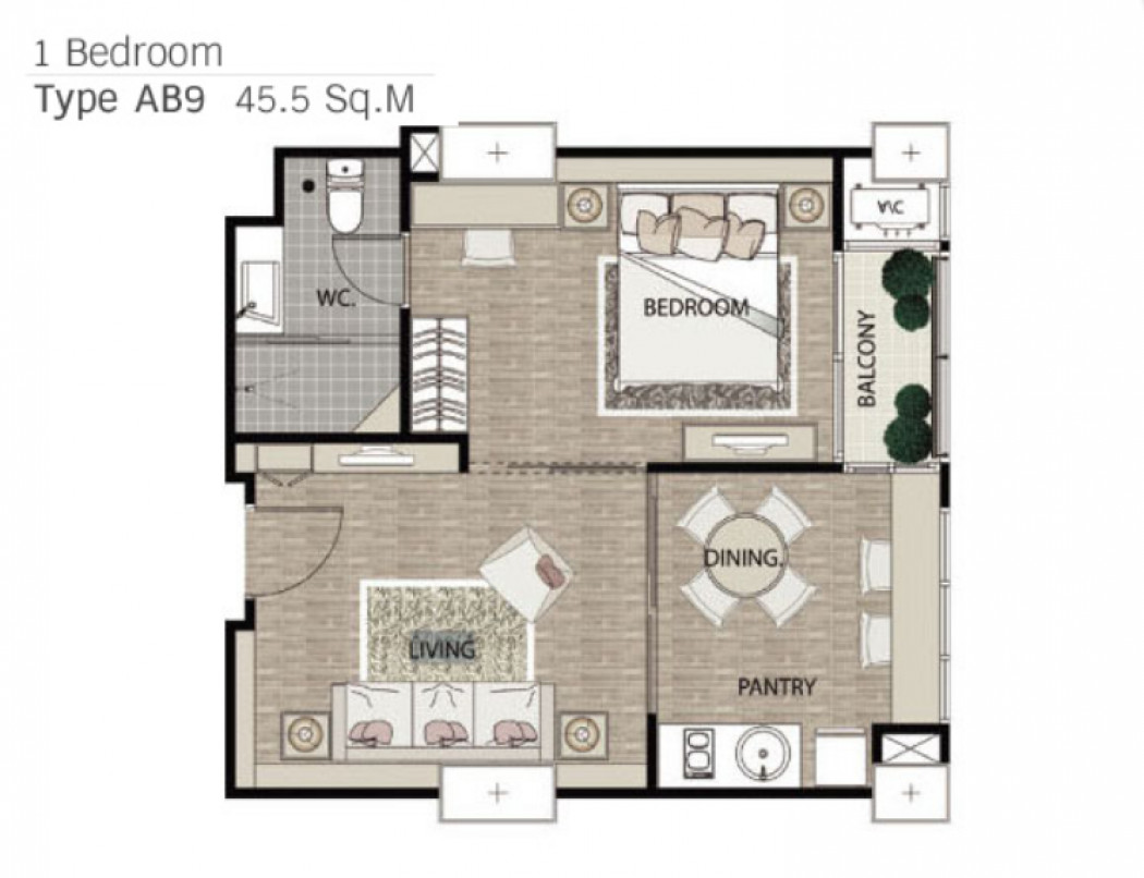 พื้นที่ใช้สอย 45.50 ตร.ม.