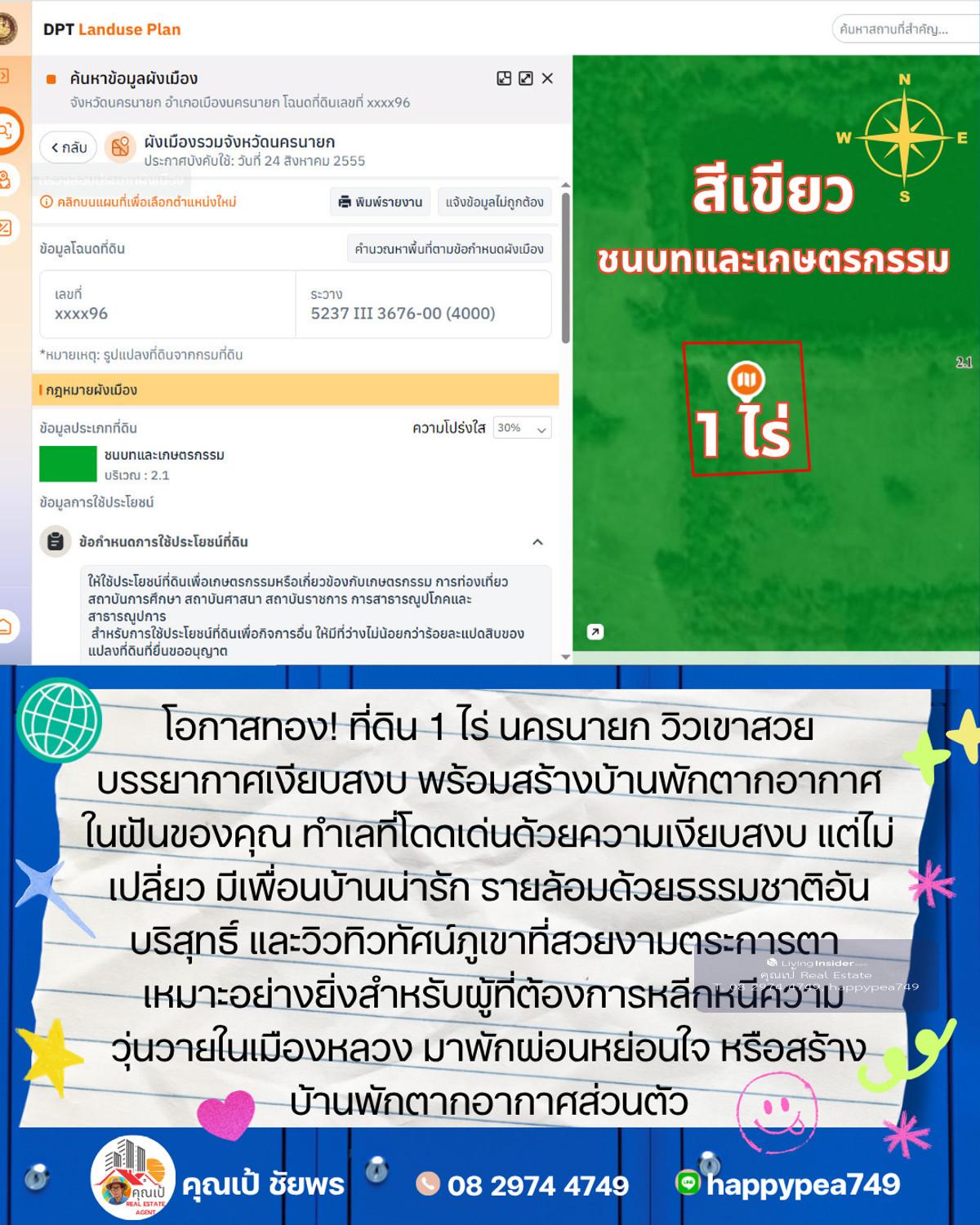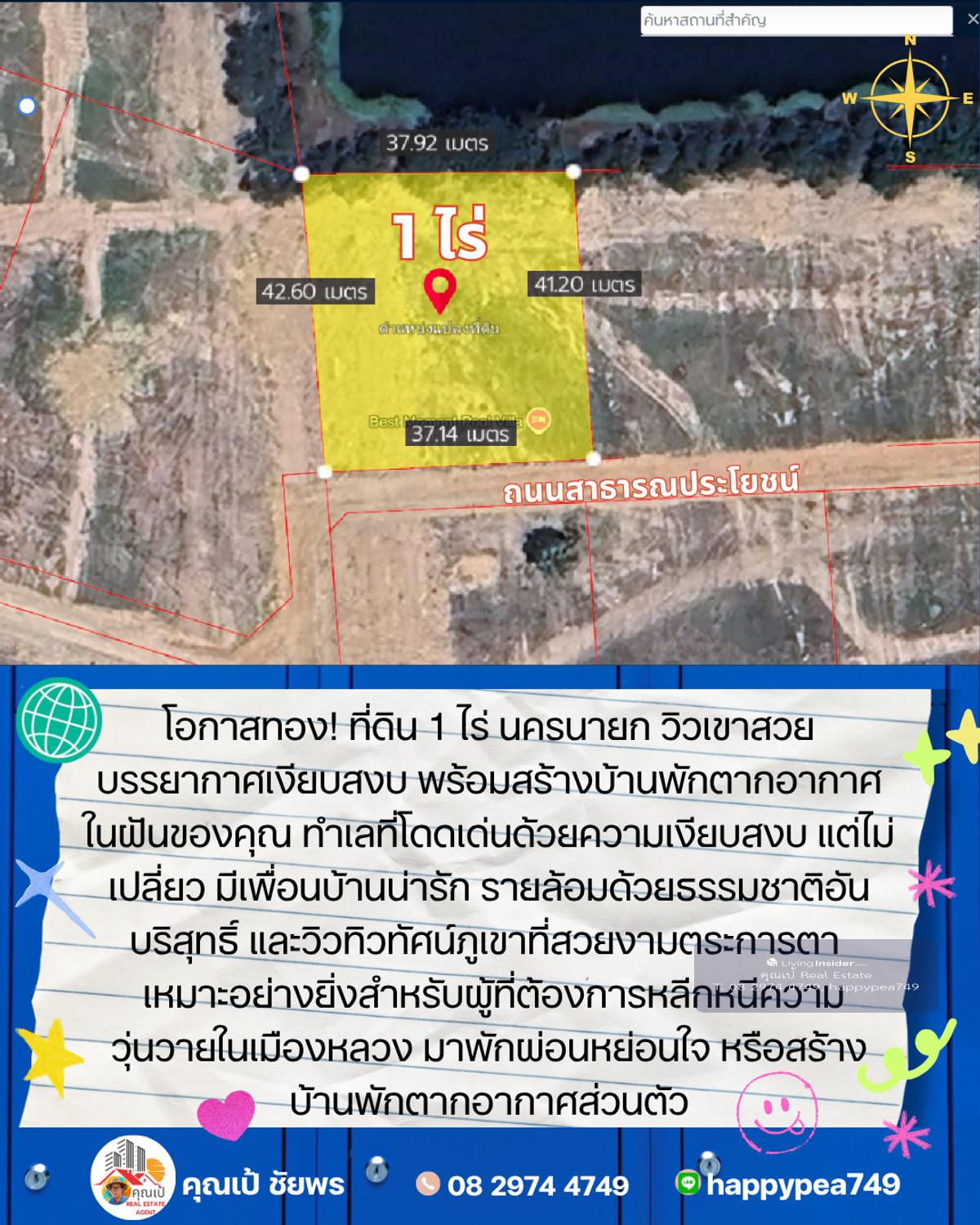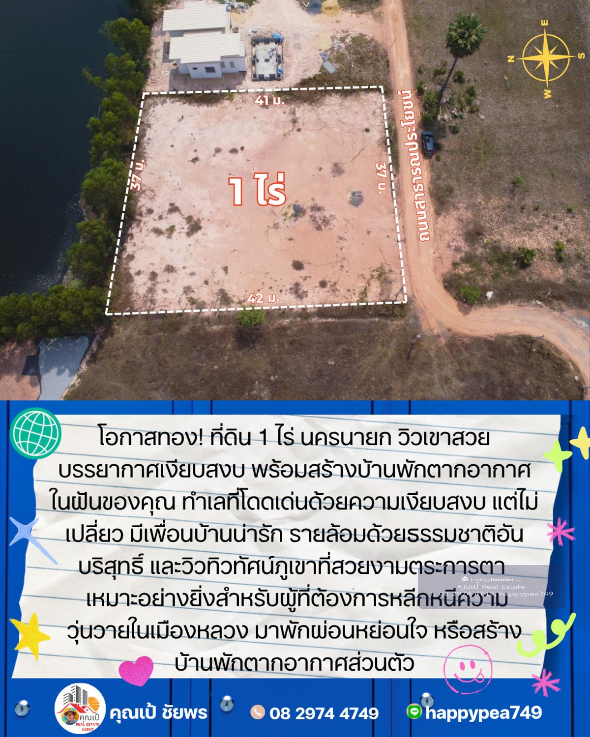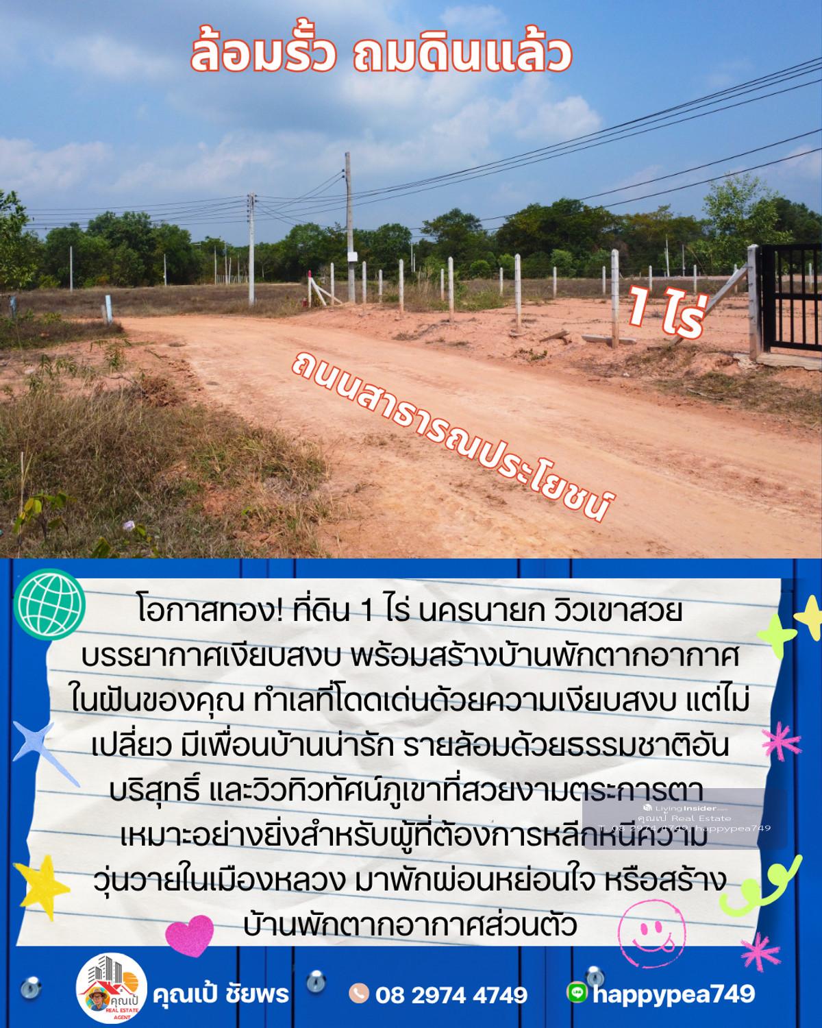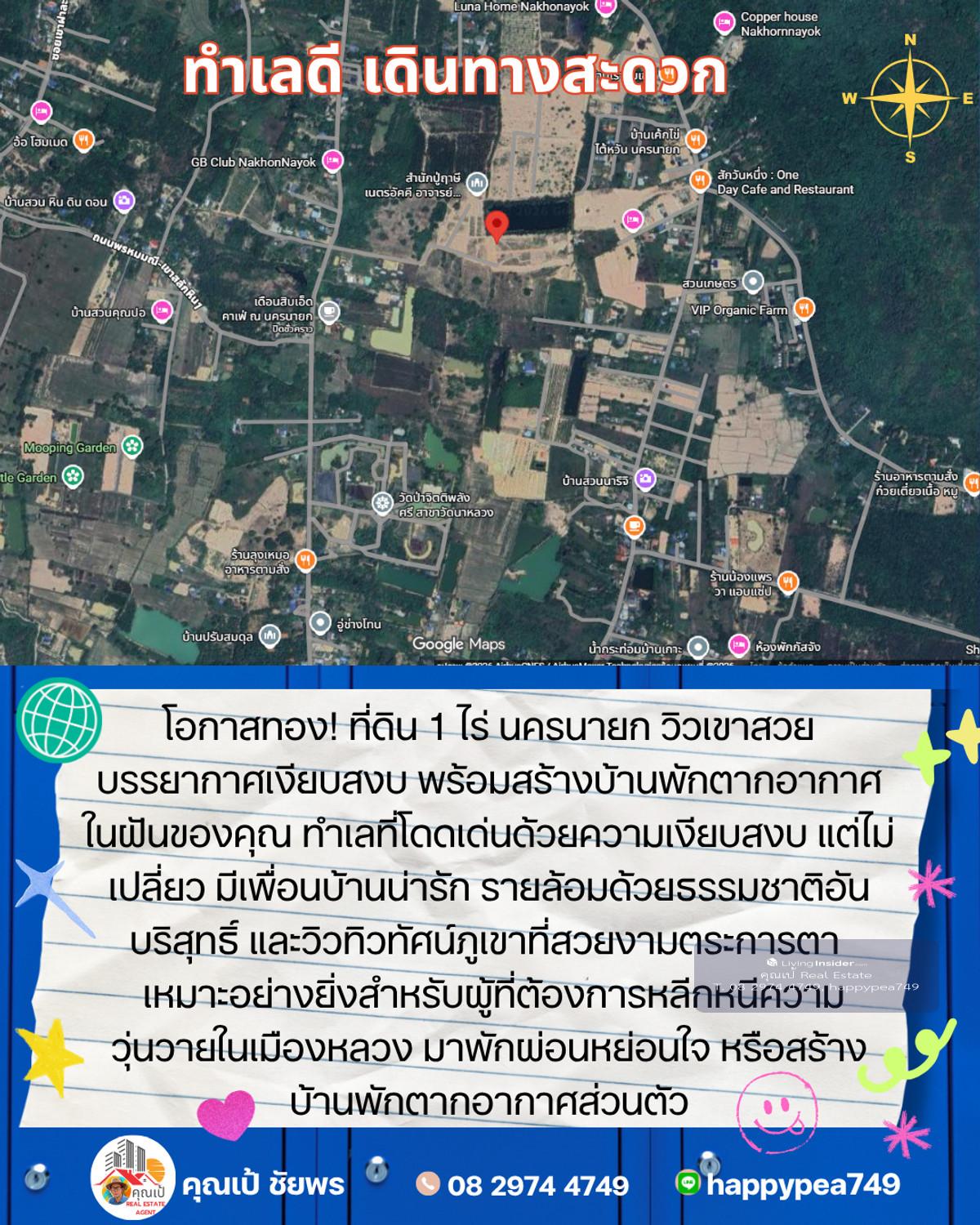 📍 ทำเลศักยภาพ: ต.พรหมณี อ.เมืองนครนายก จ.นครนายก พื้นที่ธรรมชาติ ใกล้เขา วิวสวย อากาศดีตลอดปี บรรยากาศสงบ เป็นส่วนตัว แต่ไม่เปลี่ยว มีเพื่อนบ้าน เหมาะสำหรับอยู่อาศัยจริงหรือทำธุรกิจพักผ่อน 🌿 จุดเด่นที