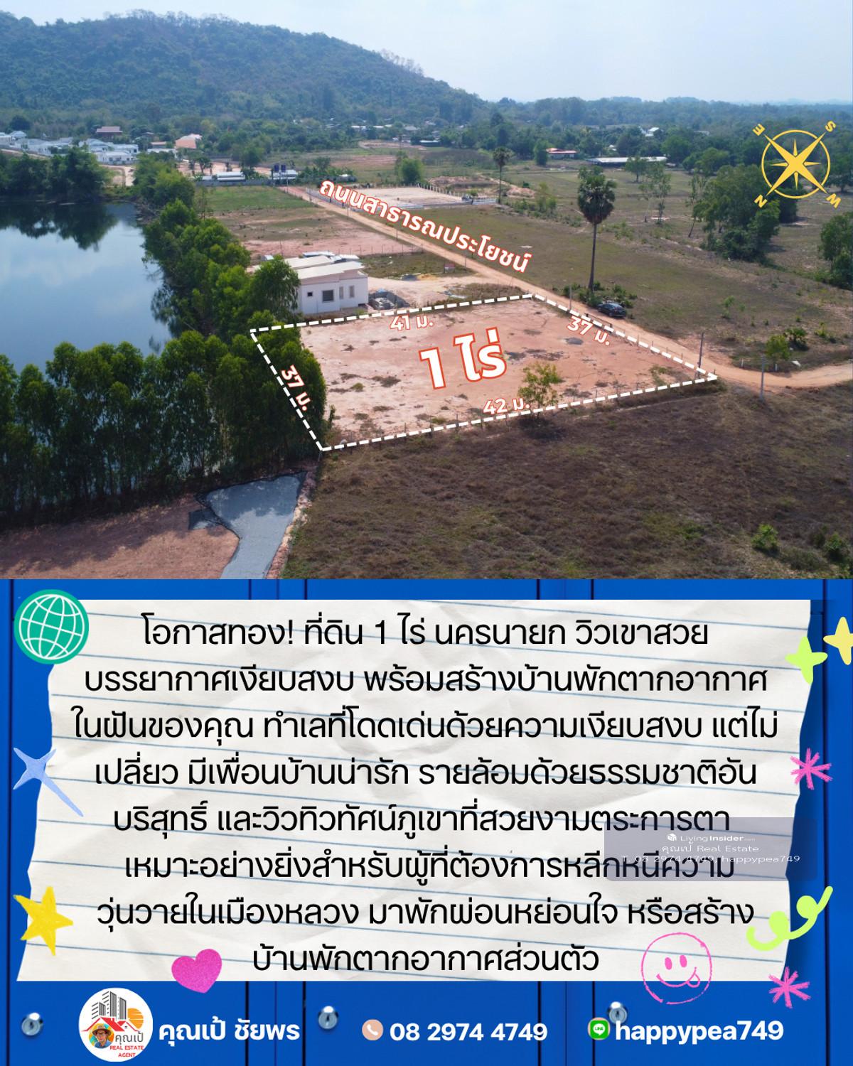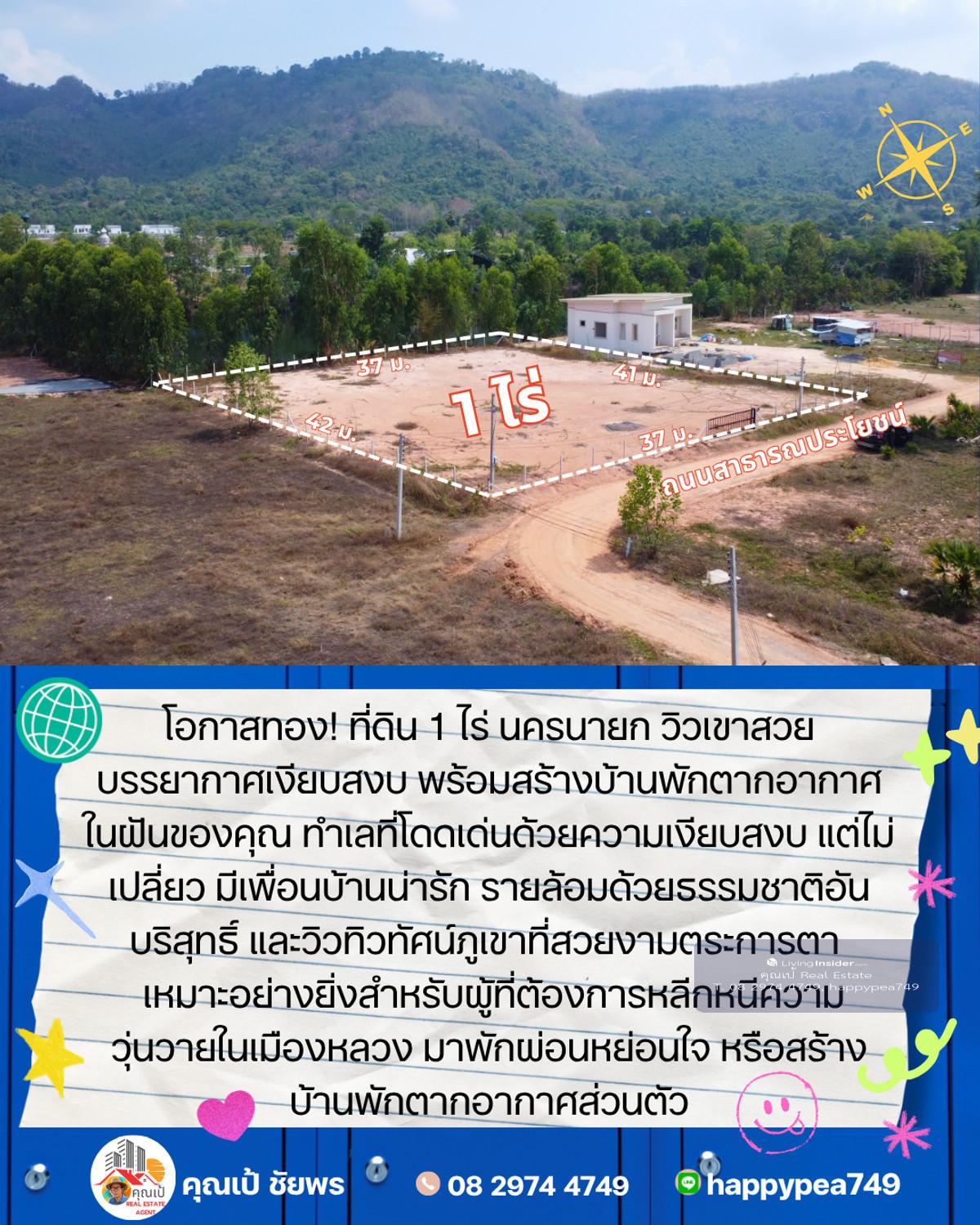 ✨ ที่ดินวิวเขา 1 ไร่ พร้อมปลูกบ้านทันที | ทำเลเงียบสงบ วิวเขา แต่เข้าถึงง่าย ในต.พรหมณี นครนายก โอกาสสำหรับคนที่กำลังมองหา “บ้านพักตากอากาศ” หรือ “ลงทุนอสังหาฯ ระยะยาว” หายากแบบนี้มีไม่บ่อย!