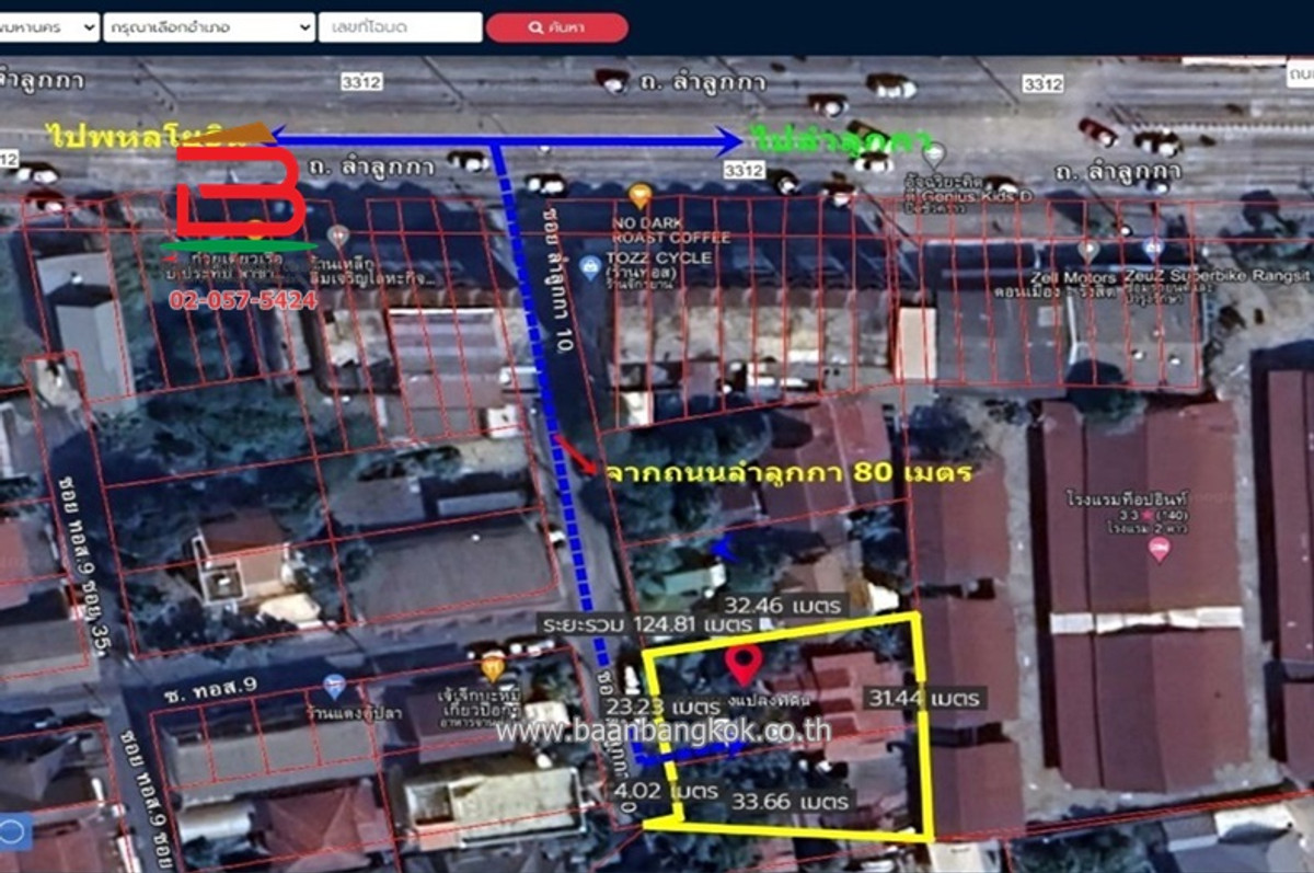 ที่ดินเปล่าถมแล้ว แปลงมุม ชุมชน ทอส.9 (ซอยลำลูกกา 10) เนื้อที่ 248 ตรว. ถนนพหลโยธิน ตำบลคูคต อำเภอลำลูกกา จังหวัดปทุมธานี