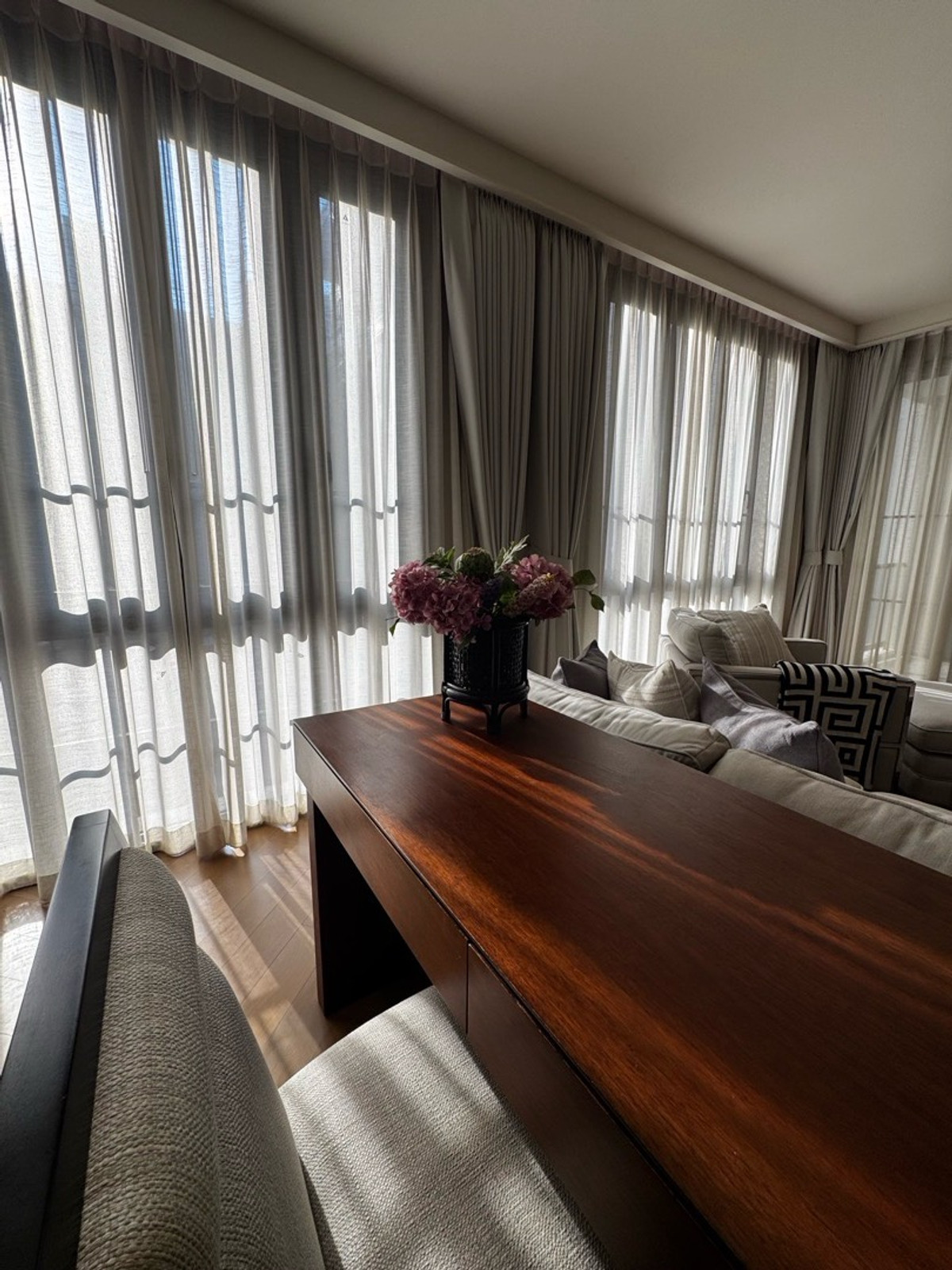 The Reserve sukhumvit 61 125 sqm 2 bedroom 3 bathroom English garden view big living room big kitchen shuttle service to major Ekkamai rent 130000/ month deposit 2 months, 1 month rental in advance ca