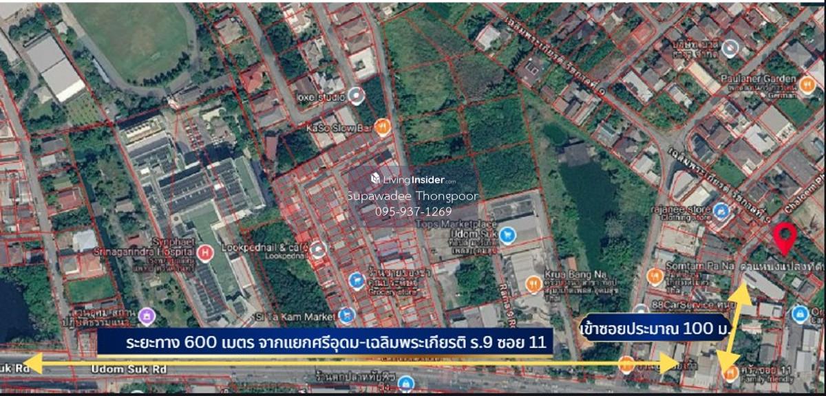 Land for sale plus building, good location, 600 meters near Sri Udom intersection, only 100 meters into the alley , near Sri Udom BTS station. Land in a potential location suitable for investment. Build a residence, office Location: Chaloem Phrakiat Rama 9, Soi 11, Bang Bon, Prawet District, Bangkok Land details :- - Total area 1-0-17 rai (417 sq m.), width 32 meters, depth 61 meters - Orange plot land (Y.7-22) - Facing south Nearby places:- - near Suan Luang Rama 9 - near Paradise Park, Seacon Srinakarin ,Central Bangna ,Top Market Place Udomsuk - near Synphaet Hospital, Thainakarin Hospital, Sikarin Hospital --------------------------------------------------------------------------------------------------------- Selling price 35,445,000.-Baht (K.C. Transfer 50/50) If interested, contact (Khun Su) Contact number ID Line : sup _ winner