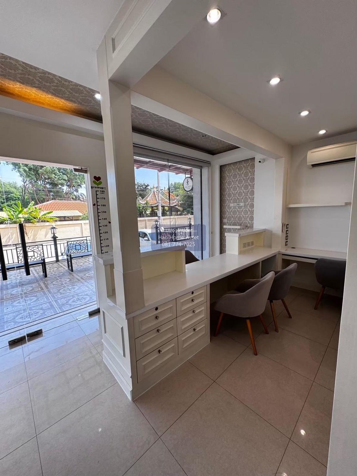 Property details: 1. The master bedroom has a walk-in closet and a large bathroom with a private bathtub on the entire floor 2. Small bedroom and living room, 2 bedrooms + 1 bathroom, 1 kitchen and dining room + western kitchen 3. Separate 2 maids rooms + 1 bathroom 4. Washing room with 2 washing machines and 1 dryer 5. 7 procedure rooms with beds and capsule boxes, 1 steaming room 6. Examination room, doctors room 7. Decorate the counter and customer seating zone 8. 18 air conditioners, 2 large refrigerators, Smart TV9. 4 water heaters 10. Private parking in the building and 2 cars in the back 11. Customer parking is a wide area on 2 sides of the road in front of the building 12. 1 storage room under the stairs and another large storage room under the attic on the top floor Further inquiries:Line ID: @816qbyrp Tel. Contact number (Manita) WeChat ID: Haohomeasset Email : Contact email ***Accepting consignment for sale-rent. All types of real estate..no advance fees***