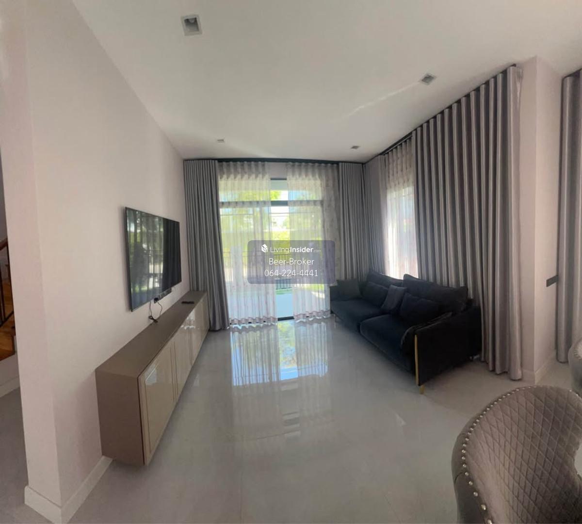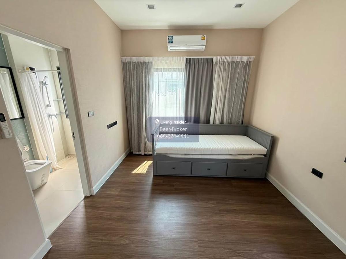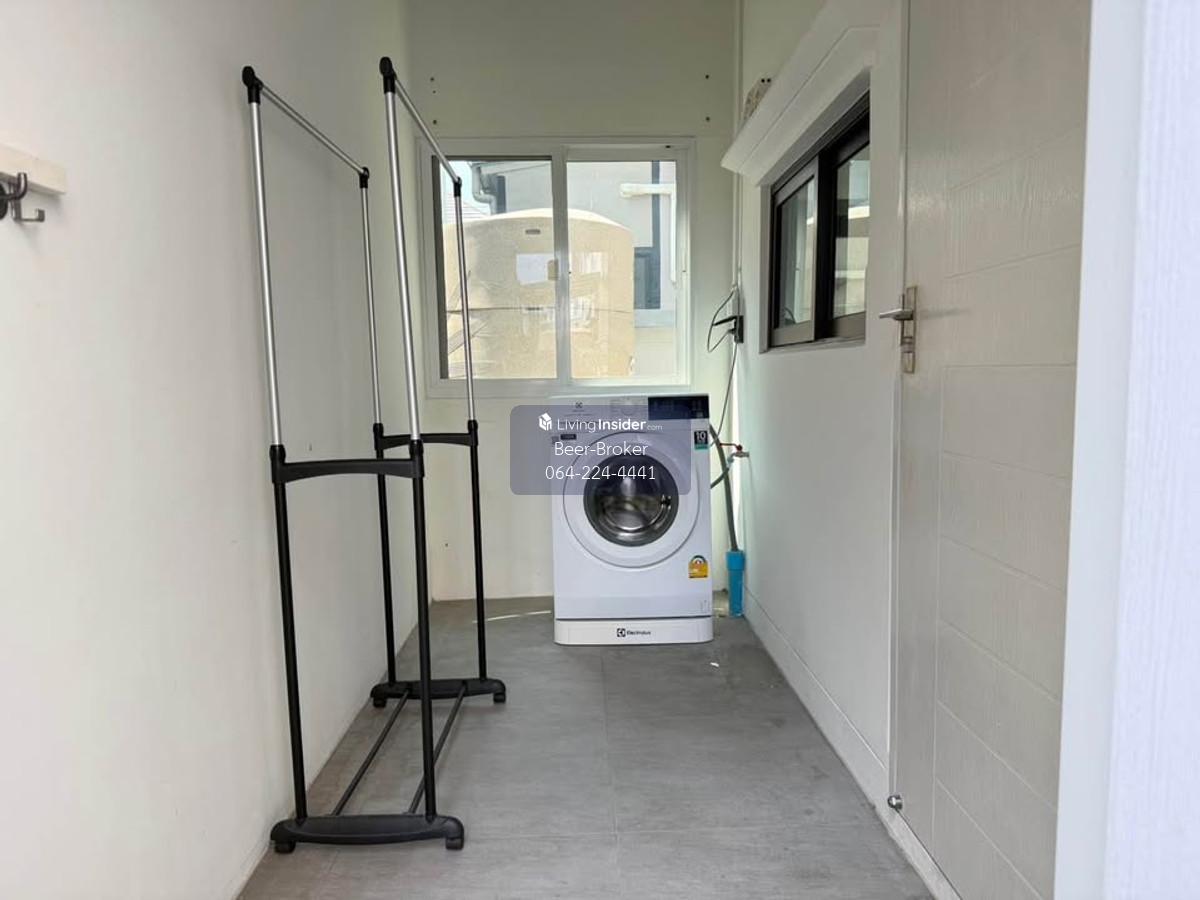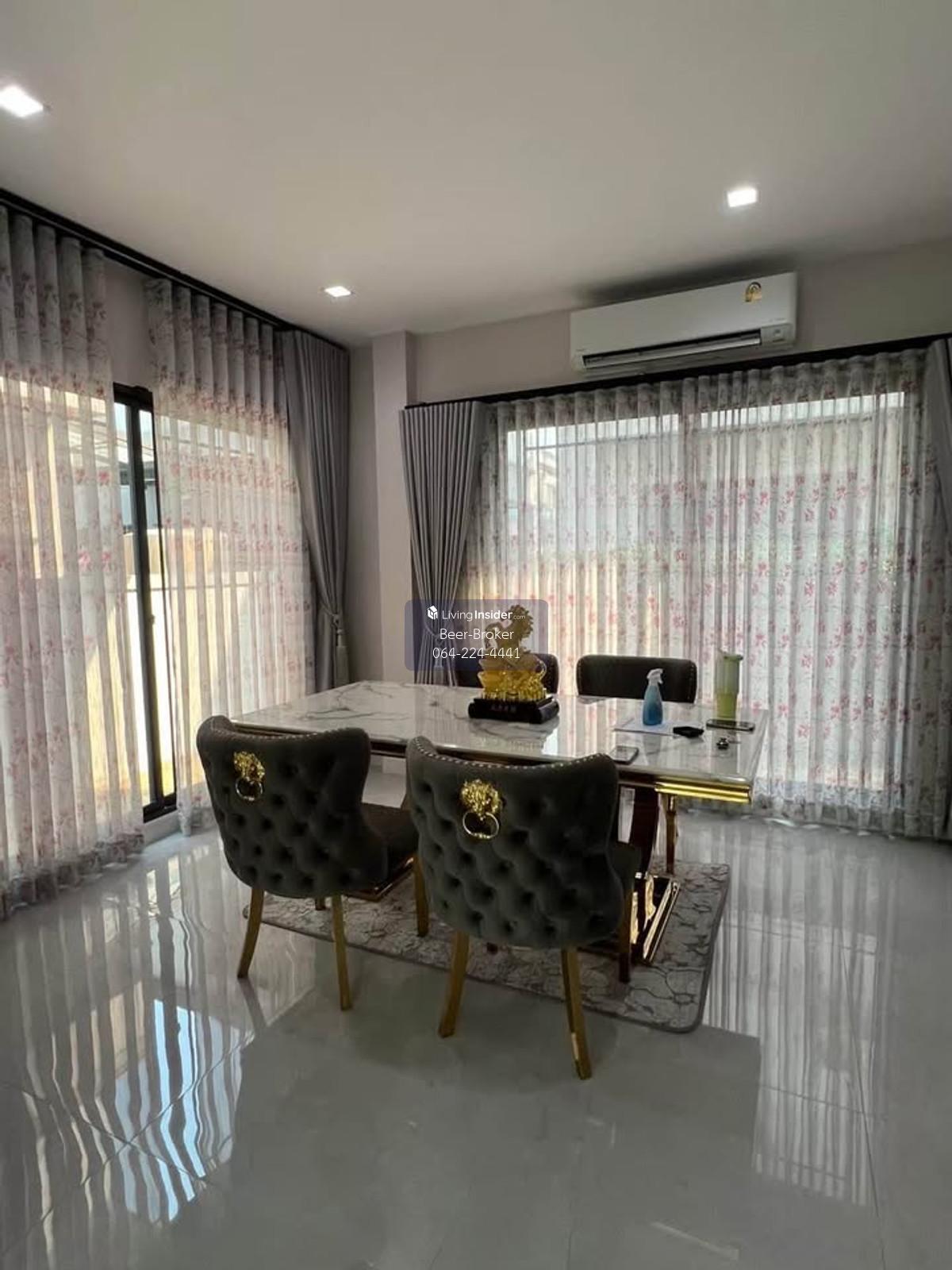 Luxury house in Bang Kadi area, near golf course, Avenue, and Bang Kadi Industrial Park. Bangkok Boulevard Tiwanon-Rangsit - Built-in furniture, ready to move in. - Digital Door Lock: Secure and convenient, no key required. - Home Automation: Control lights and air conditioning via smartphone from anywhere. - 24-Hour Security Connect: 24-hour security alert system connecting guardhouse and central facilities. - EV Charger: Installed and ready for electric vehicles. - 4 Bedrooms / 4 Bathrooms / 2 Parking Spaces Focusing on practicality and high-quality built-in furnishings. - Living Room: 65" Smart TV with built-in stand and large sofa set. - European Kitchen (Ikea Set): Beautiful built-in cabinets, complete with built-in electric hob, extractor hood, microwave, large double-door refrigerator, sink, and functional storage cabinets. - Separate laundry area. Includes Electrolux front-load washing machine. Bedroom Amenities: - Master Bedroom: 6-foot bed with built-in wardrobe and luxury dressing table. - Middle Bedroom 1: 5-foot bed with wardrobe and TV stand. - Middle Bedroom 2: Bunk beds (2 x 3.5-foot beds) with clothes rack. - Multipurpose room downstairs can be converted into a bedroom or office as needed. For more information, please contact us at Khun Beer : Call Contact number Line ID : @beerbroker (please include @) or Click 👉 https://lin.ee/pqQqdgP At your service.