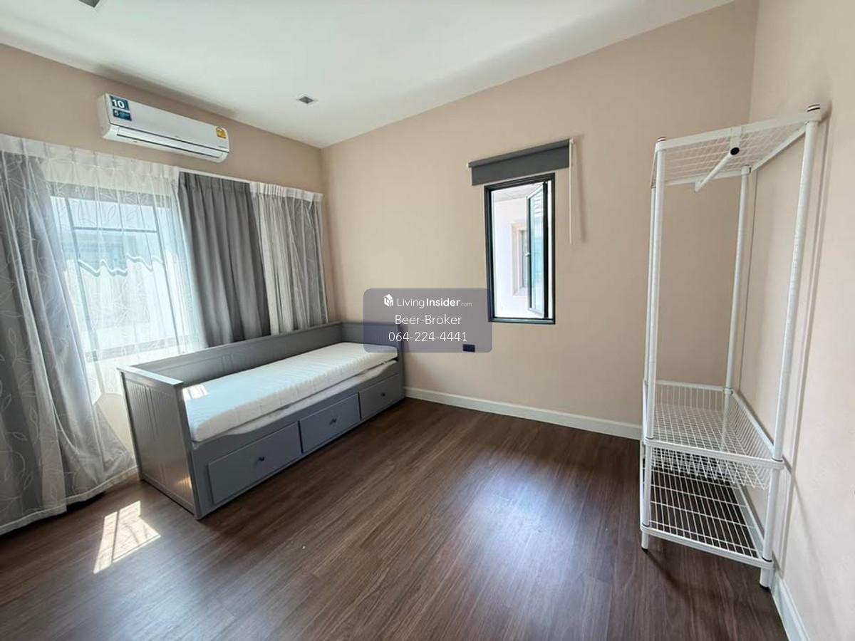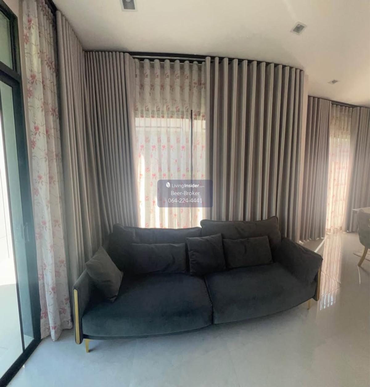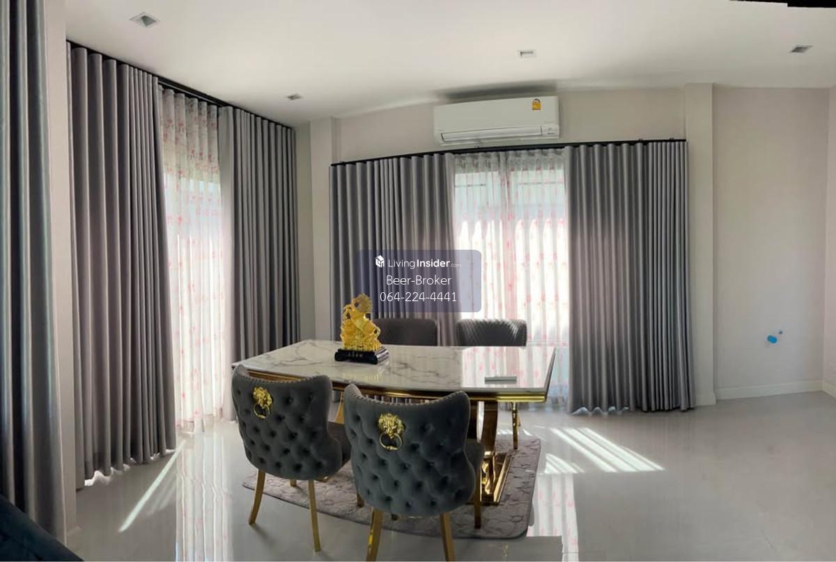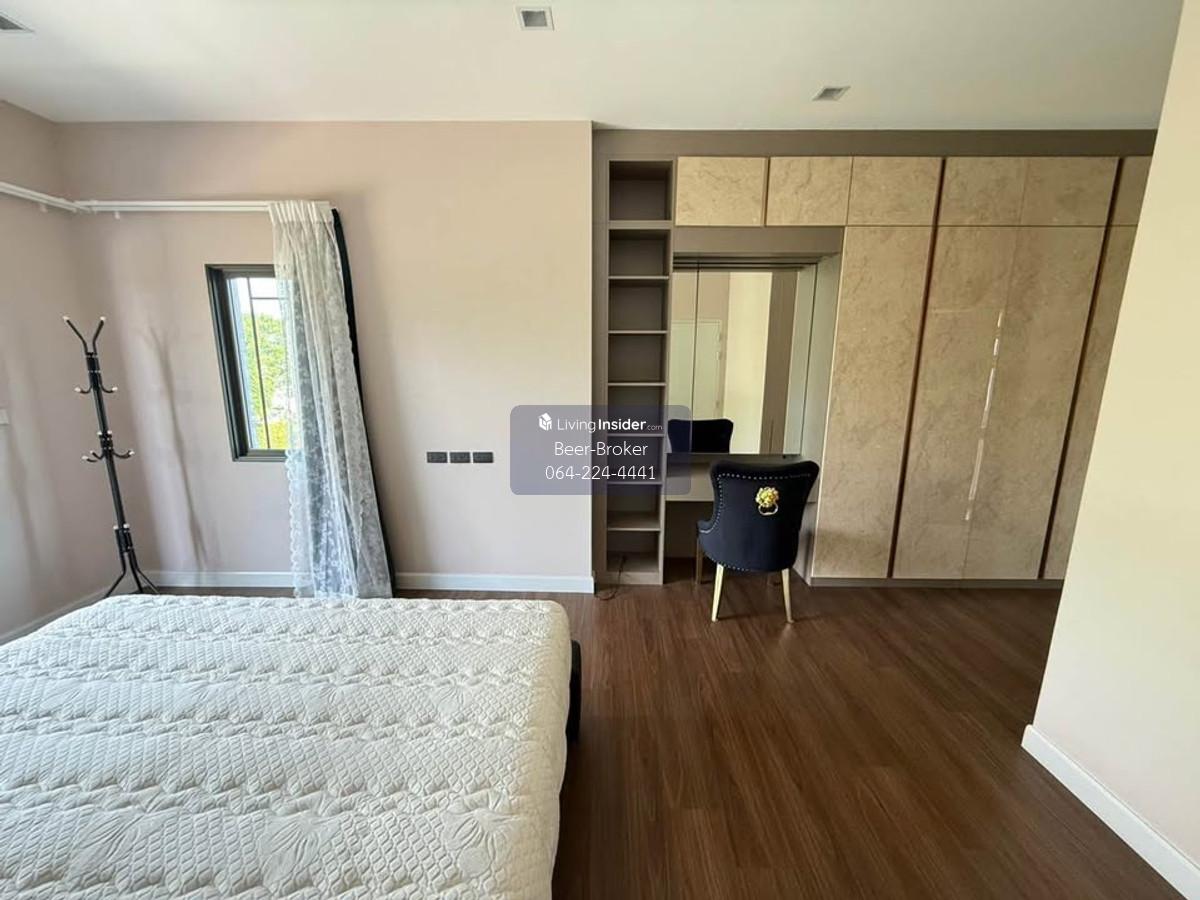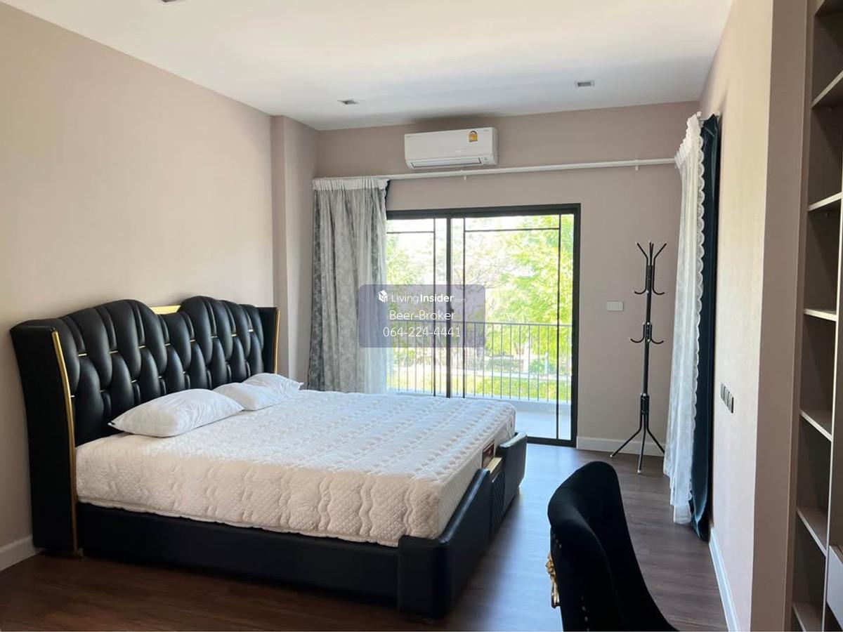 Luxury house in Bang Kadi area, near golf course, Avenue, and Bang Kadi Industrial Park. Bangkok Boulevard Tiwanon-Rangsit - Built-in furniture, ready to move in. - Digital Door Lock: Secure and convenient, no key required. - Home Automation: Control lights and air conditioning via smartphone from anywhere. - 24-Hour Security Connect: 24-hour security alert system connecting guardhouse and central facilities. - EV Charger: Installed and ready for electric vehicles. - 4 Bedrooms / 4 Bathrooms / 2 Parking Spaces Focusing on practicality and high-quality built-in furnishings. - Living Room: 65" Smart TV with built-in stand and large sofa set. - European Kitchen (Ikea Set): Beautiful built-in cabinets, complete with built-in electric hob, extractor hood, microwave, large double-door refrigerator, sink, and functional storage cabinets. - Separate laundry area. Includes Electrolux front-load washing machine. Bedroom Amenities: - Master Bedroom: 6-foot bed with built-in wardrobe and luxury dressing table. - Middle Bedroom 1: 5-foot bed with wardrobe and TV stand. - Middle Bedroom 2: Bunk beds (2 x 3.5-foot beds) with clothes rack. - Multipurpose room downstairs can be converted into a bedroom or office as needed. For more information, please contact us at Khun Beer : Call Contact number Line ID : @beerbroker (please include @) or Click 👉 https://lin.ee/pqQqdgP At your service.