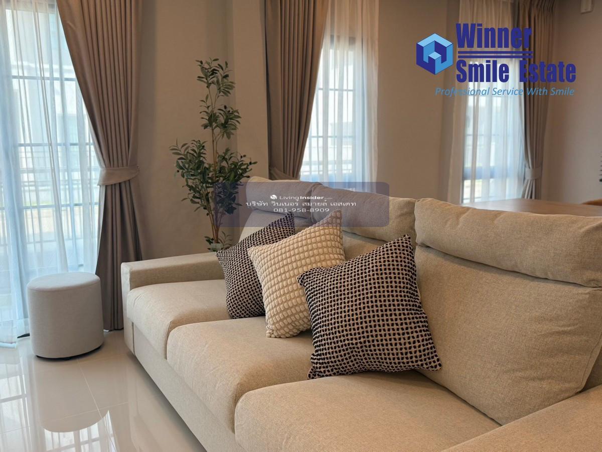 Single house for rent at Centro Bangna Phase 2, located next to Mega Bangna. Beautifully furnished and fully equipped. Convenient transportation. This is a new house type with a beautiful design and spacious living area, perfectly designed for optimal use of space. ====================================== Rental Terms & Details : WSE-R02069 • Contract : Minimum 1 year • Rent : ฿120,000 / month • Deposit : 2 months • Advance Payment : 1 month *** Total 3 Months for Move-in Contact for viewing & more info : K. Picha, Winner Smile Estate Line ID : winnersmile66 Tel : 0 Contact number ====================================== House Details : • Fully Furnished with Built-in Furniture • 4 Bedrooms | 5 Bathrooms | 3 Parking Spaces • Usable Area : 265 sq.m. | Land Size : 57 sq.wa. • Fully furnished and equipped with appliances as pictured. • Separate kitchen with door • 1 refrigerator • Air conditioner | TV • Located on Kanchanaphisek Road, near the exit/entrance, accessible from Bangna, Rama 9, and Rama 2 in just 10-15 minutes. Schedule a viewing : Line ID : winnersmile66 Tel : 0 Contact number Winner Smile Estate Co., Ltd www.winnersmileestate.com Contact for viewing & more info : K. Picha, Winner Smile Estate Line ID winnersmile66 Tel : 0 Contact number ====================================================== Nearby locations : • Mega Bangna • IKEA Bangna • 4 International Schools • Bangkok Patana School • Suvarnabhumi Airport ======================================================