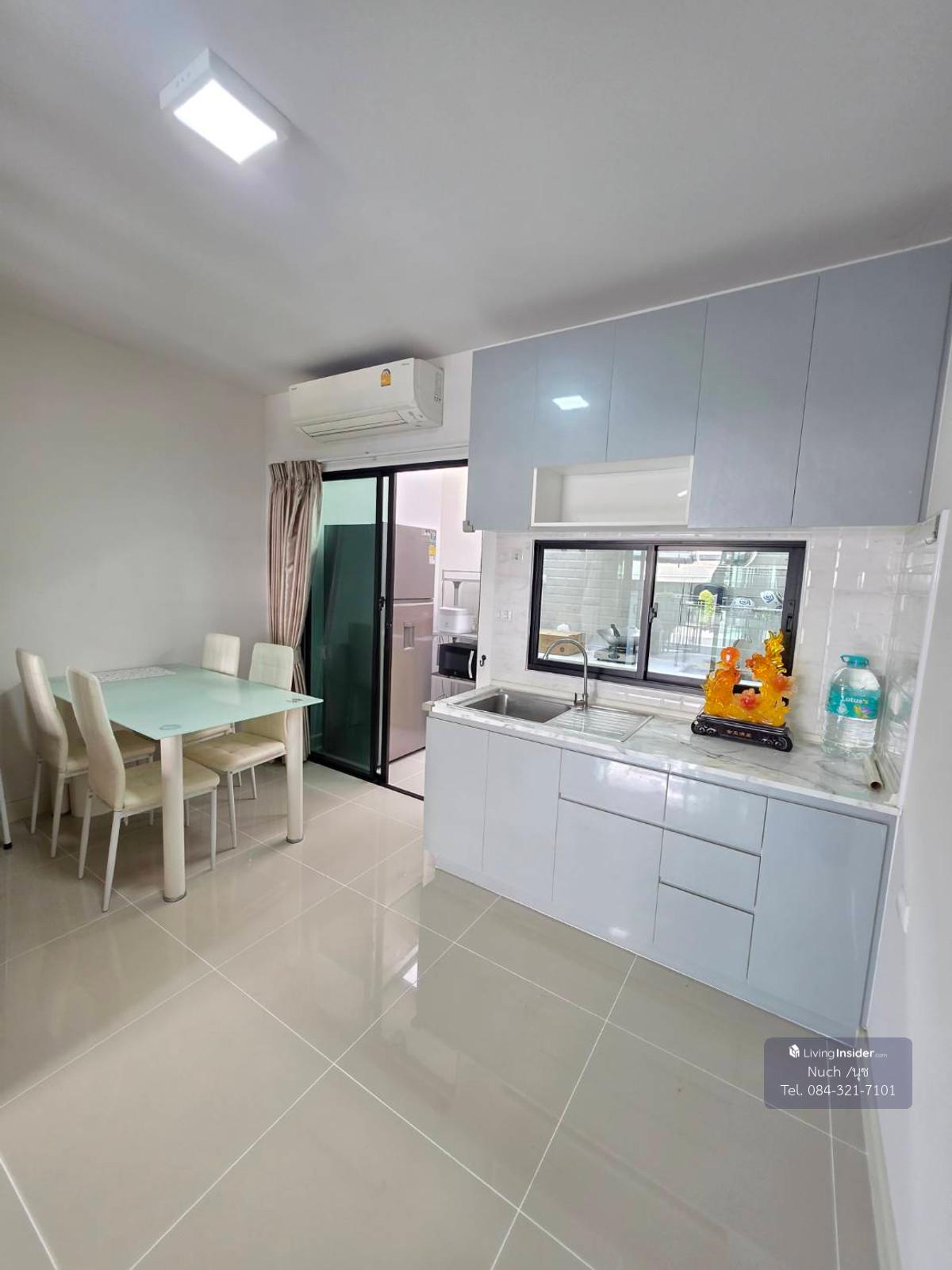 Baan Klang Muang Srinakarin – On Nut Location: Chaloem Phrakiat Road, Prawet Subdistrict, Prawet District, Bangkok 3-storey townhouse Land size 17 sq.w. Usable area 160 sq.m. 3 bedrooms, 3 bathrooms Electrical appliances 3 air conditioners -Refrigerator -Washing machine -Bed -Cabinet -TV Pets allowed And can apply to set up a juristic person Kitchen equipment included Rental price 36,000 baht/month Conditions Receive a 1-year lease, minimum 2 months security deposit + 1 month advance rent Contact Khun Nuch Tel: Contact number Line: d558899d WhatsApp: Contact number WeChat : Nuch9180 Facilities Clubhouse Saltwater pool Kids pool Fitness Public park KATSAN system 24-hour security system Nearby important places Tesco Lotus On Nut 80 Seacon Square Paradise Park People Park Suan Luang Rama IX Minder School, Phatthana Suksa Triang Udom Suksa Phatthanakan School Vibharam Hospital, Phatthanakan Samitivej Hospital, Srinakarin Prawet Police Station