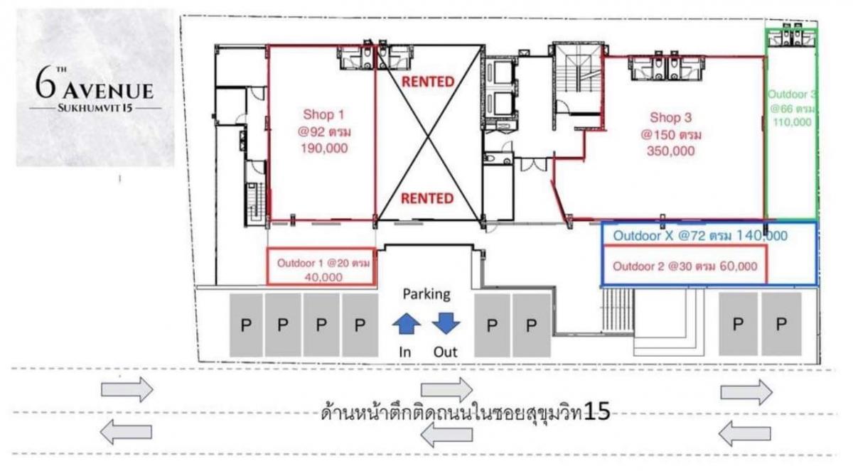 CM0009 Commercial Spaces for rent in Asoke, Nana - Sukhumvit area Suitable for restaurants, cafes, others Area : 320 sq.m. Price : 600,000 3 months deposit, 1 month in advance Minimum contract 3 years