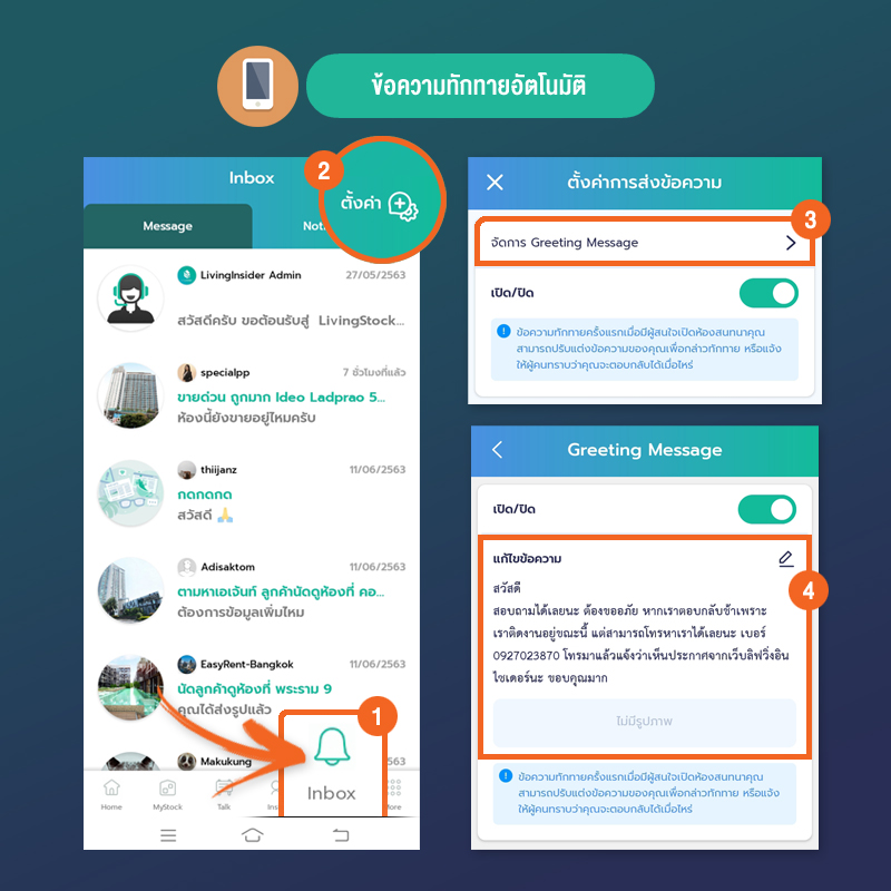 3. Press the "Manage Greeting Message" tab to set up automatic greeting messages