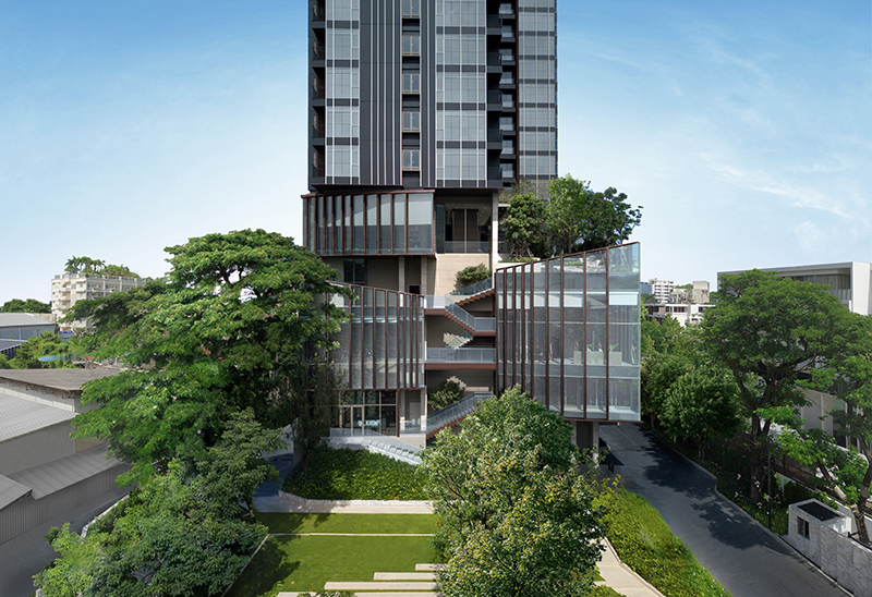 ไม่ว่าจะเป็น เรื่องราวการอนุรักษ์ต้นจามจุรีเก่าแก่อายุราว 50 ปี จำนวน 3 ต้น ที่เปรียบเสมือนปอดฟอกอากาศ เป็นสิ่งมีชีวิตที่มีคุณค่ากับคนในชุมชนเอกมัย การต่อยอดต้นจามจุรีด้วยการเข้ามาอยู่ในพื้นที่ส่วนกลางโครงการผ่านงานศิลปะ การเลือกใช้หินอ่อนที่มีลวดลายเป็นเอกลักษณ์เฉพาะตัว อย่าง Rainforest Green Marble ถือเป็นวัสดุชิ้นเอกที่อยู่ในพื้นที่