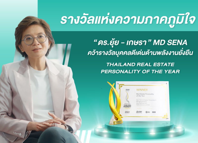 สุดยอดผู้นำหญิงแห่งปี MD SENA Group “ดร.ยุ้ย - เกษรา” คว้ารางวัล Thailand Real Estate Personality of the Year Award “บุคคลดีเด่นด้านพลังงานสะอาดสู่ความยั่งยืนในอนาคตของธุรกิจอสังหาริมทรัพย์” จาก PropertyGuru Thailand Property Awards 2022 ที่จัดขึ้นเป็นครั้งที่ 17