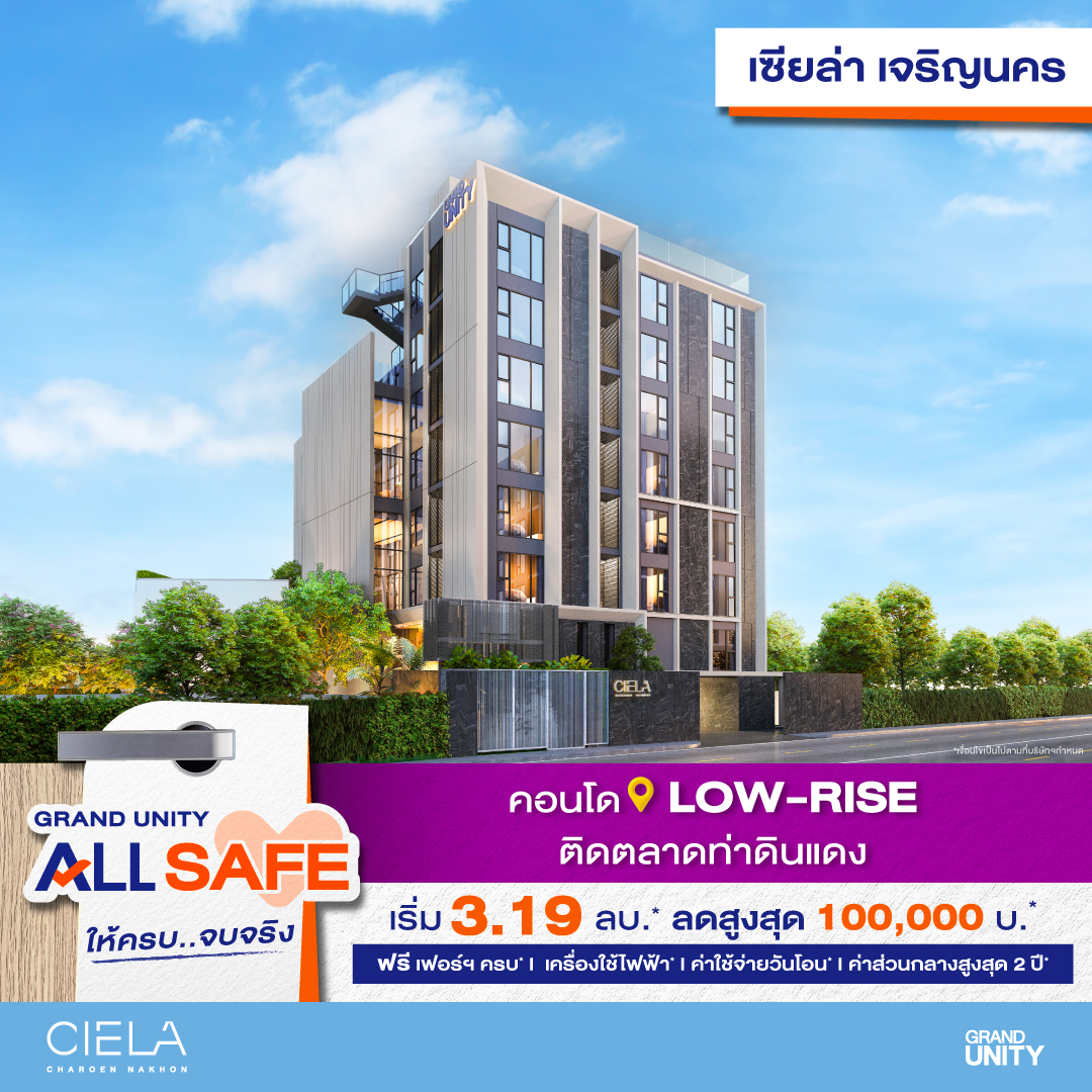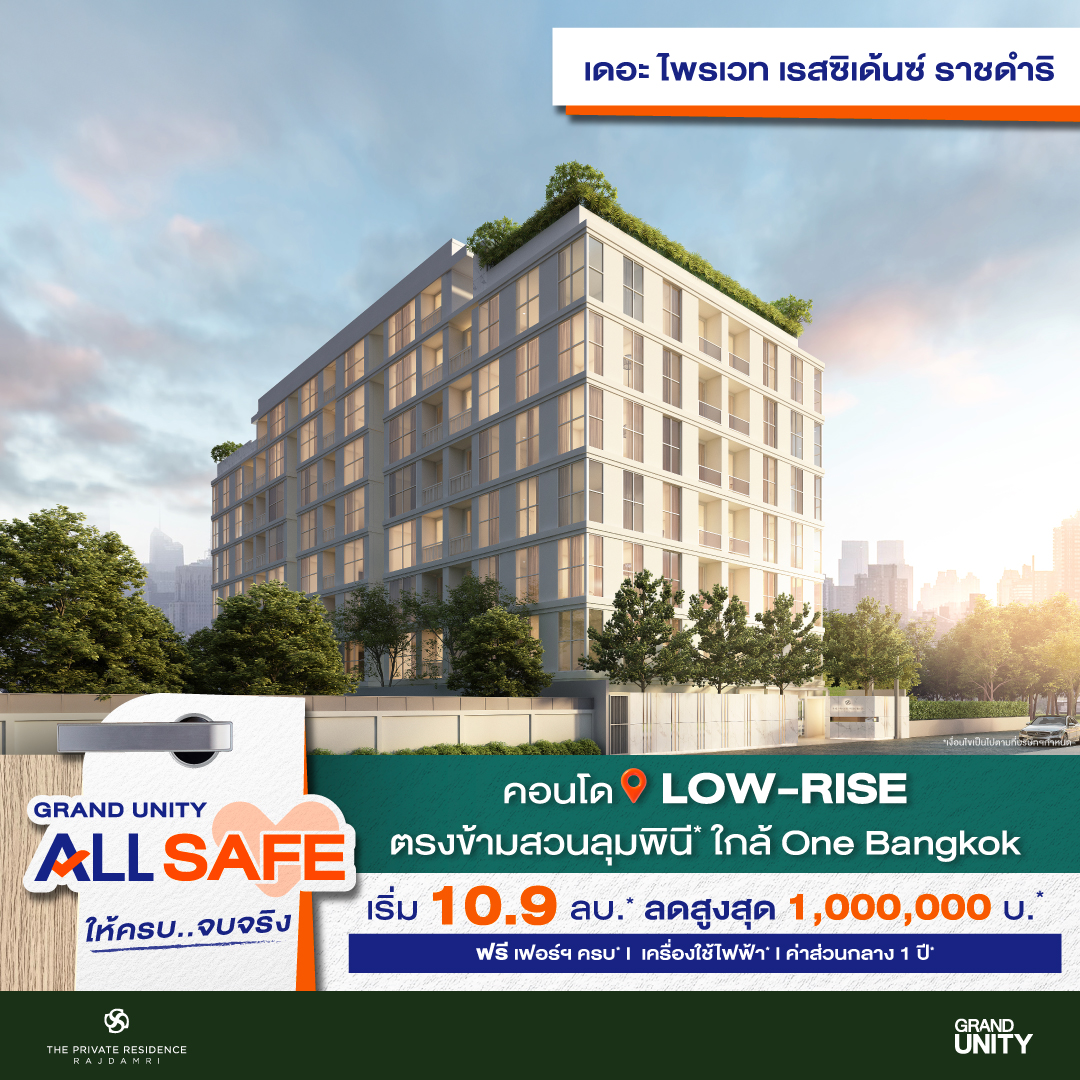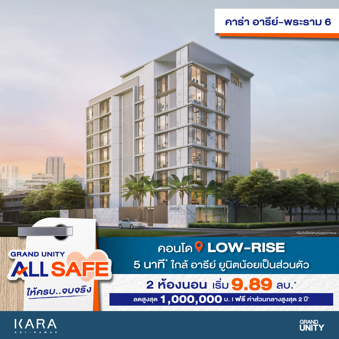 เพื่อเป็นการตอบสนองเทรนด์ตลาดอสังหาฯ ดังกล่าว บริษัทฯ จึงได้นำ 6 คอนโดมิเนียมโลว์ไรส์พร้อมอยู่ บนทำเลศักยภาพ ทั่วกรุงเทพฯ จัดโปรโมชันสุดพิเศษ เพื่อให้ลูกค้าที่กำลังมองหาที่อยู่อาศัยได้เป็นเจ้าของได้ง่ายยิ่งขึ้นกับ “GRAND UNITY ALL SAFE”