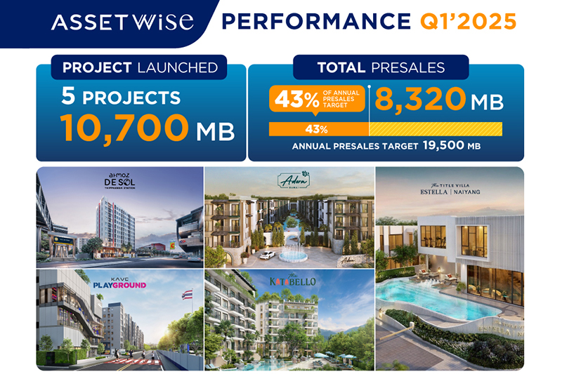 ASW คว้ารายได้รวม Q1/2568 กว่า 1,804 ล้านบาท กำไรสุทธิ 201 ล้านบาท และกวาดพรีเซล 8,320 ล้านบาท ทะลุ 43% ของเป้ายอดขายทั้งปี พร้อมโชว์แบ็กล็อก 30,636 ล้านบาท มุ่งรักษากระแสเงินสด-ส่งมอบงานตามกำหนด Q2/2568 เตรียมโอนคอนโด Low-Rise เพิ่ม 2 โครงการ และเตรียมส่ง THE TITLE Legendary Bang-Tao หนุนรายได้ครึ่งปีหลัง