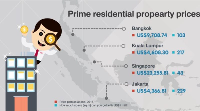 ตามข้อมูลจากบริษัทที่ปรึกษาแสดงให้เห็นว่า ราคาอสังหาฯที่อยู่อาศัยในเมืองกัวลาลัมเปอร์มีราคาอยู่ที่ 4,608.30 ดอลล่าร์สหรัฐต่อตารางเมตร ณ สิ้นปี 2559 ซึ่งสูงกว่าราคาในเมืองจาการ์ตาที่มีราคาอยู่ที่ 4,366.81 ดอลล่าร์สหรัฐต่อตารางเมตร แต่ยังต่ำกว่าราคาในกรุงเทพฯที่มีราคาอยู่ที่ 9,708.74 ดอลล่าร์สหรัฐต่อตารางเมตรและ 23,255.81 ดอลล่าร์สหรัฐต่อตารางเมตรในสิงคโปร์