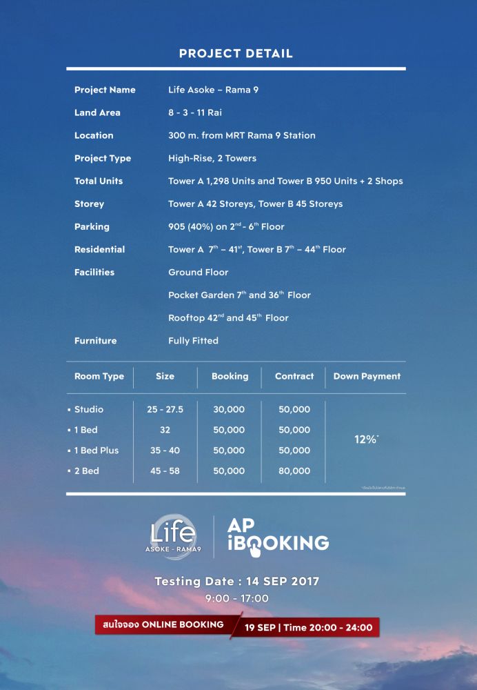 มาที่หลังแต่ปังที่สุด!.... กับการสร้างปรากฏการณ์เหนือความคาดหมายครั้งใหญ่อีกครั้งของ AP (Thailand) ในช่วงไตรมาส 4 ปี 2017 กับโครงการที่คนในแวดวงอสังหาฯ ต่างกำลังพูดถึงกันด้วยความตื่นเต้นอย่างออกรส ‘Life Asoke-Rama 9’ (ไลฟ์ อโศก-พระราม 9) High-Rise คอนโดมิเนียมที่อยู่บนทำเลใจกลางย่านที่มีความเจริญมากที่สุด คนอยู่อาศัยมากที่สุด และทำให้มีการลงทุนมากที่สุด ตั้งอยู่ติดถนนอโศก-ดินแดงฝั่งขาออก การเดินทางสะดวกสบาย ด้วยทางพิเศษศรีรัช ทางด่วนพระราม 9 อีกทั้งยังใกล้รถไฟฟ้า MRT สถานีพระราม 9 ระยะทาง 300 เมตร และใกล้ Airport Rail Link สถานีมักกะสัน ประมาณ 500 เมตร