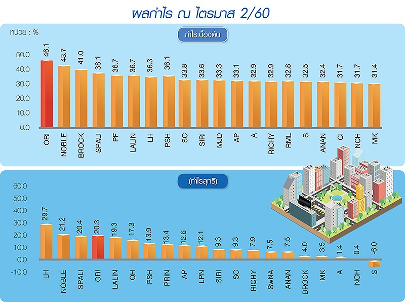 สถิติในท่วงทำนองเป้าหมายมีไว้พุ่งตำก็คือ ณ ไตรมาส 2/60 ออริจิ้นฯ ยืนโดดเด่นอันดับ 1 ในด้านกำไรเบื้องต้นหรือกรอสมาร์จิ้น (GP) อยู่ที่ 46.1%
