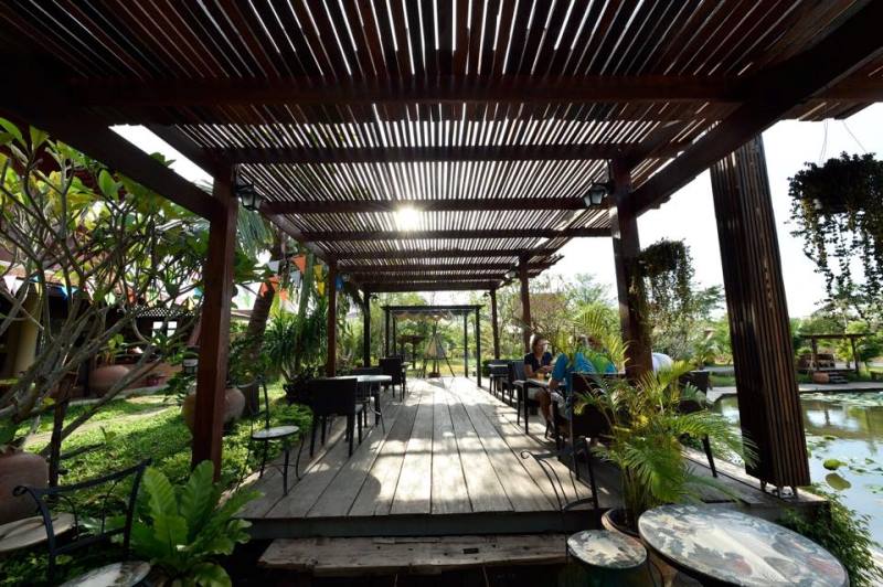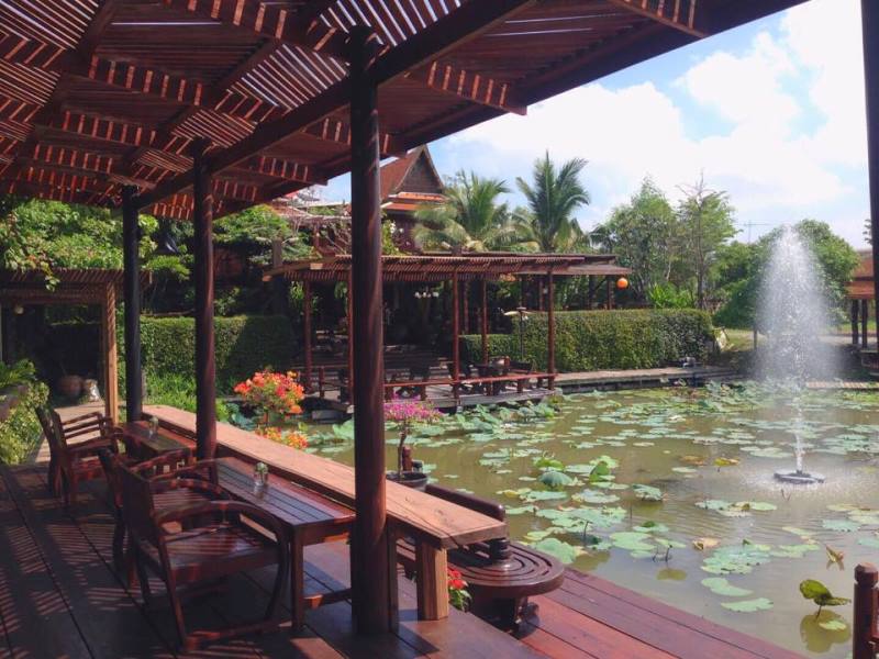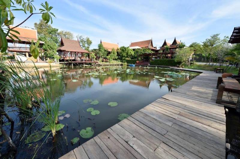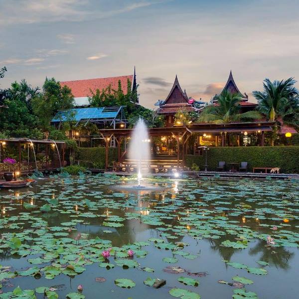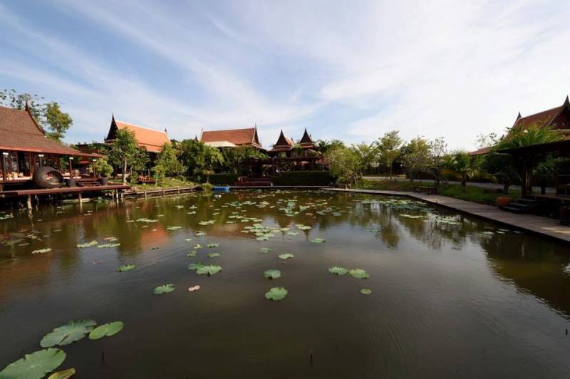 บรรยากาศรอบๆ โรงแรมเห็นสระบัวขนาดใหญ่ที่รายล้อมไปด้วยอาคารทรงไทยหลายหลัง รอบสระมีทางเดินไม้ สามารถเดินชื่นชมบ้านทรงไทยได้ทุกหลัง และตอนกลางคืนยังมีไฟสีตกแต่งโดยรอบโรงแรมอีกด้วย มองแล้วดูสบายตาสุดๆ เรียกได้ว่าผสมผสานความเก่ากับความใหม่ได้อย่างลงตัว