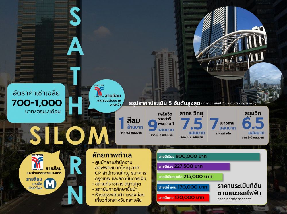 จะเห็นว่า สีลม-สาทร ถือเป็นย่านธุรกิจที่ราคามาแรงฮอตฮิตติดท๊อป 5 ของทุกปี โดยจากราคาประเมินที่ดินปี 2559-2562 “สีลม-สาทร” ติดอันดับเป็นทำเลที่มีราคาประเมินสูงสุด 5 อันดับแรก เรียกได้ว่า ราคาขึ้นทุกปี ไม่มีลง