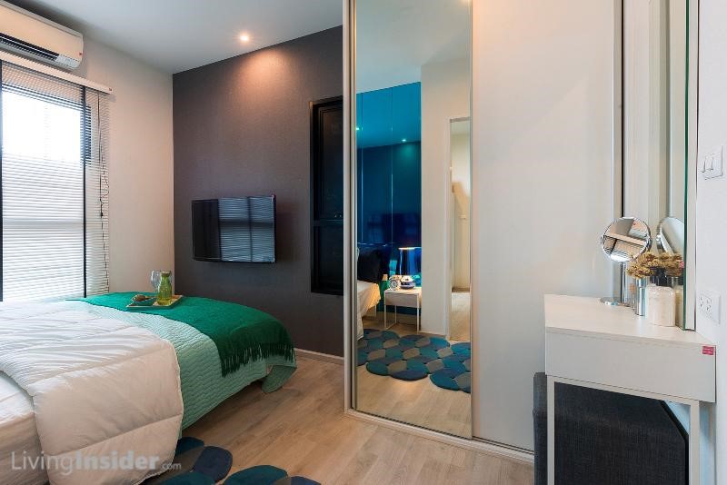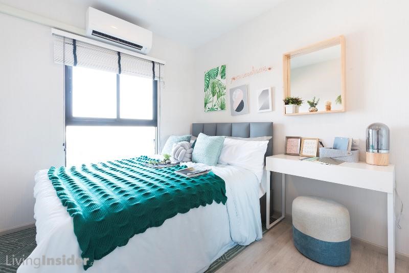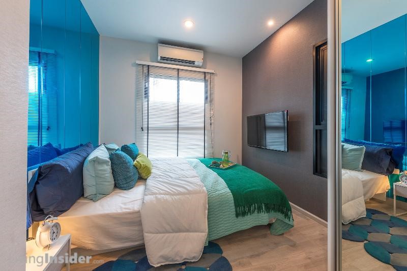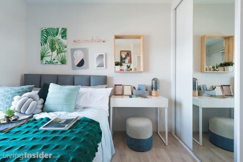 และห้องนอนเล็ก สามารถวางเตียงขนาด 3.5 ฟุต - ตู้เสื้อผ้าบิวท์อิน และติดตั้งทีวีแขวนผนังได้