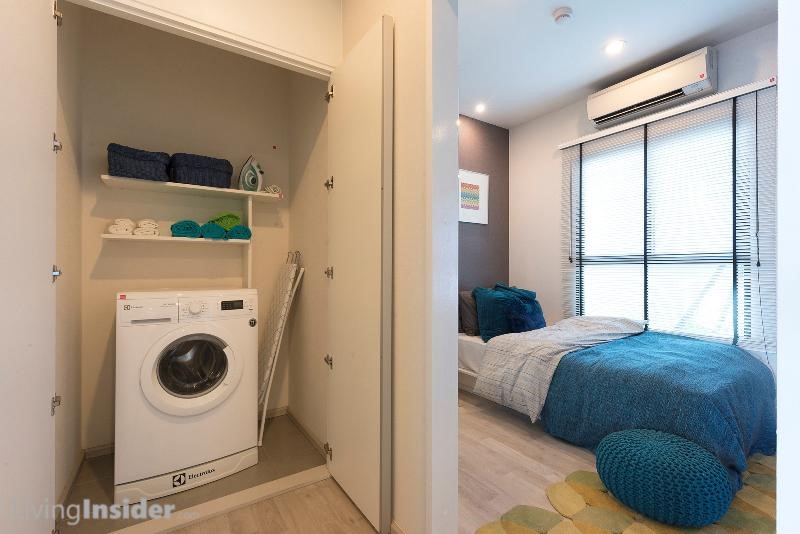 กลับมาส่วนครัวด้านซ้ายมือ ตรงนี้โครงการทำห้องซักล้างไว้ครับ เปิดมาพบกับจุดวางเครื่องซักผ้า - ชั้นวางอเนกประสงค์ พร้อมห้องน้ำส่วนกลาง