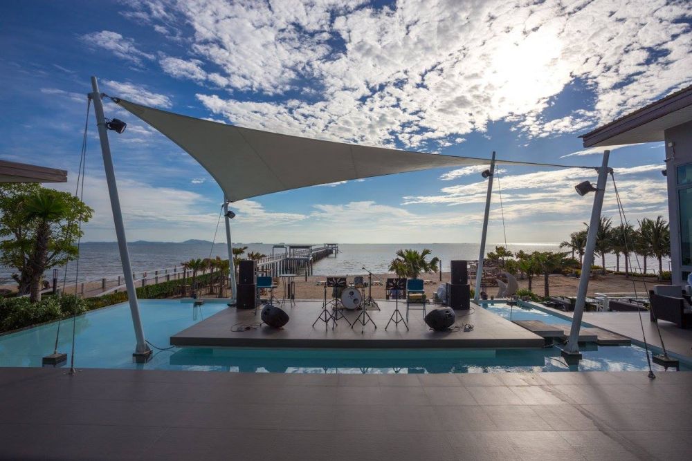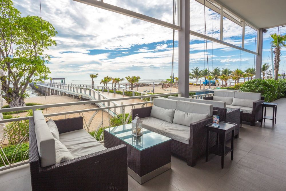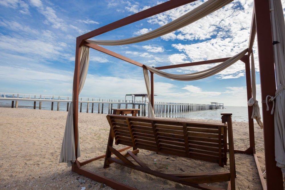 ส่วนใครที่อยากใกล้ชิดทะเลไปอีกหน่อย ก็มีโซนหน้าหาด “Cabana” ให้นั่งเหยียดขาผ่อนคลาย ให้เท้าได้สัมผัสทราย ใบหน้าสัมผัสลมทะเล ชมพระอาทิตย์ยามเย็น เดินเล่นกินลมชมนกบินบนสะพานที่ทอดยาวลงไปในทะเล