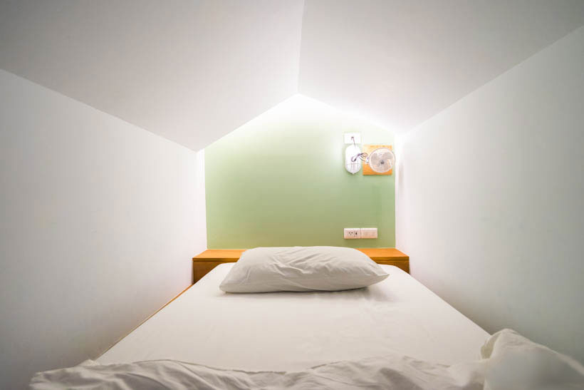 มีล็อกเกอร์เก็บของฝังอยู่กับเตียง ที่เตียงชั้น 2 จะมีเชือกสำหรับดึงตัวให้ขึ้นไปได้ง่ายๆ รวมถึงมีไฟหัวเตียง และพัดลมจิ๋วระบายอากาศ บางห้องพักจะมีหน้าต่างที่เลื่อนเปิดออกได้ ส่วนบางห้องจะมีหน้าต่างเห็นบรรยากาศท้องถนนด้านนอก
