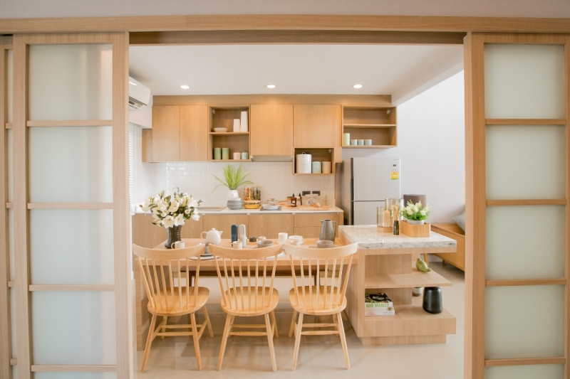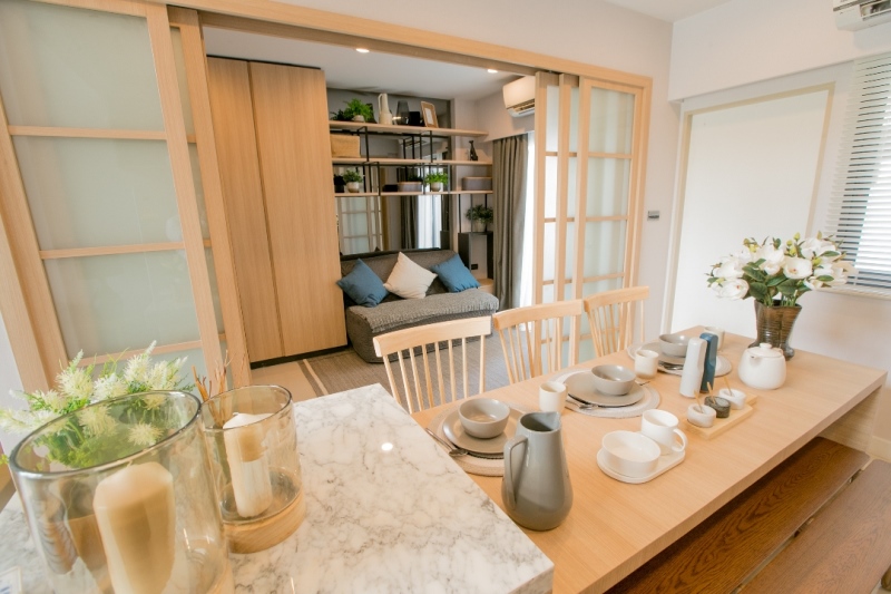 พร้อมฟังก์ชั่นประตูบานเลื่อนดีไซน์พิเศษแบบซ่อนเก็บในผนัง เพิ่มความปลอดภัยกันลื่นด้วยราวจับในห้องน้ำ และพื้นที่หลังบ้านยังสามารถต่อเติมเป็นครัวไทยได้อีกด้วย ด้านหน้ากว้างถึง 5.5 เมตร จอดรถได้ 2 คัน