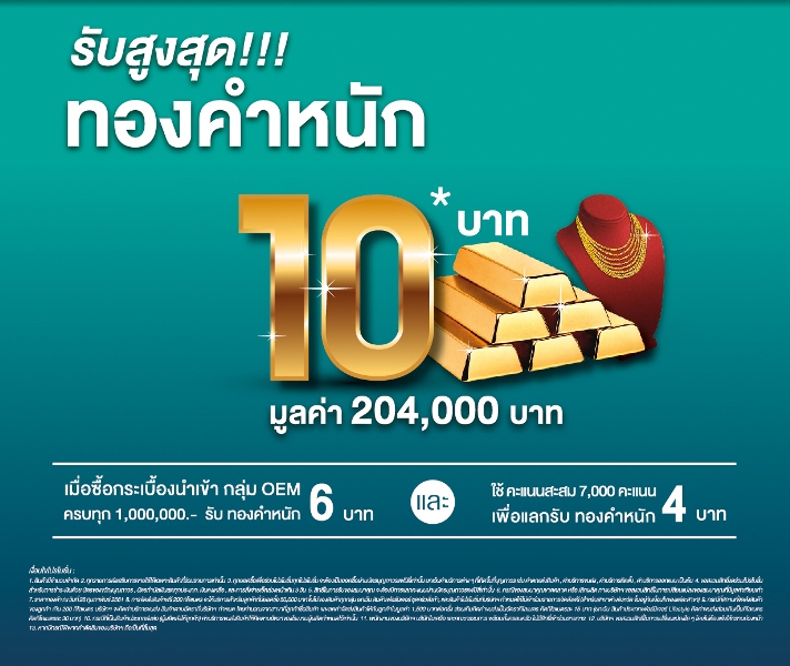 สิทธิพิเศษต่อสุดท้ายรับโชคทองคำหนัก 10 บาท เมื่อมียอดใช้จ่าย 1,000,000 บาทในกระเบื้องนำเข้ากลุ่ม OEM และ ใช้คะแนนสะสมบุญถาวรแฟมิลี่ 7,000 คะแนน