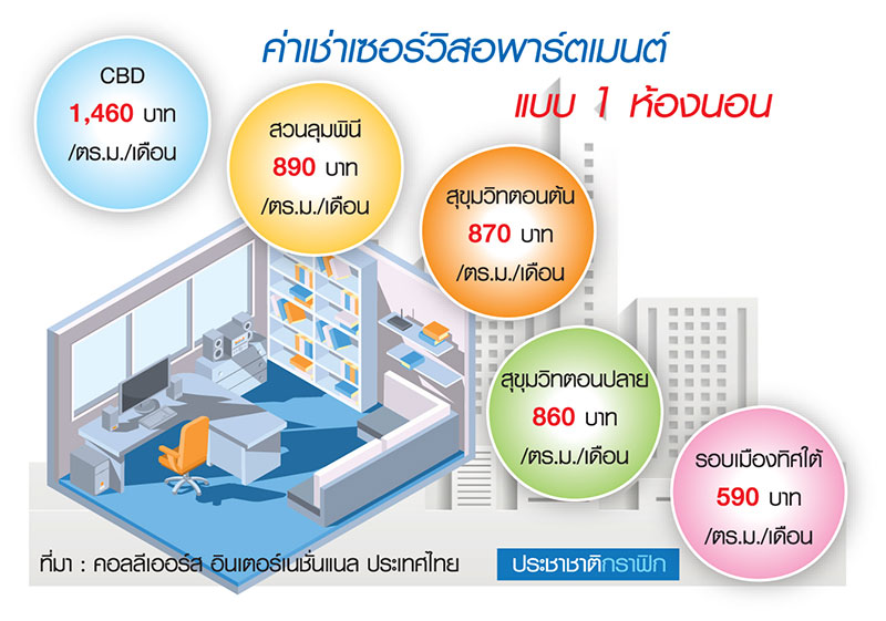 ผลสำรวจร้อนฉ่าว่าด้วยตลาดเซอร์วิสอพาร์ตเมนต์ในพื้นที่กรุงเทพมหานครจากบริษัท คอลลิเออร์ส อินเตอร์เนชั่นแนล ประเทศไทย จำกัด ระบุปีนี้กำลังจะมีซัพพลายใหม่เพิ่ม 5,000-6,000 ยูนิต