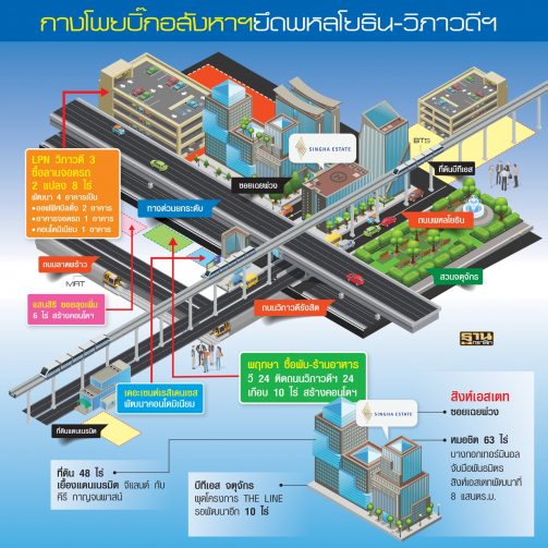 บิ๊กอสังหาฯ ยึดทำเล 'ห้าแยกลาดพร้าว' รับศูนย์เศรษฐกิจใหม่ ... สิงห์เอสเตท 'นริศ เชยกลิ่น' เปิดแผนพัฒนาที่ดินเฉยพ่วง 20 ไร่ ขณะเจ้าของโรงเรียนเซนต์จอห์น-คอนโดเดอะเชนต์ ตัดขายที่ดินซอยลุงเพิ่มให้แสนสิริ ด้าน พฤกษาซื้อผับดัง V24 วิภาวดีฯ 24 ... แอล.พี.เอ็น ยึดวิภาวดีฯ 3 ผุดมิกซ์ยูส
