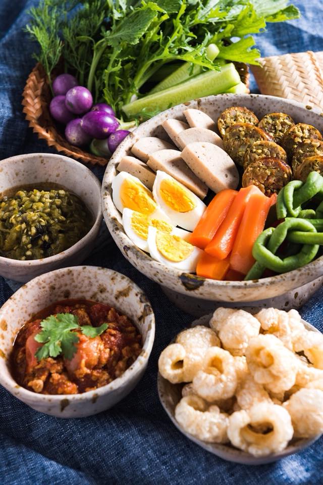 แถมยังทำให้บรรยากาศในร้านดูอบอุ่นขึ้นมาอีกด้วย ภาชนะที่ใช้ใส่อาหารเป็นงานเซรามิค ที่สั่งออกแบบใหม่ และมาจากจังหวัดแพร่อีกเช่นกัน เมนูแต่ละเมนู จะมีภาชนะที่ใส่แตกต่างกันไป ตัวอย่างเช่น ภาชนะที่ใส่เซท ออเดิร์ฟเมือง ก็จะลดทอนมาจาก ขันโตก ที่เป็นภาชนะใส่อาหารของทางภาคเหนือ เป็นต้น