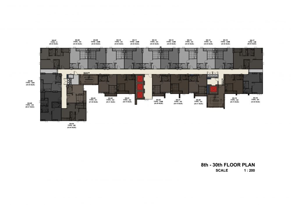 โครงการนี้มีวิวและแบบห้องให้เลือกหลากหลาย คุณสามารถเลือกตามความชอบส่วนตัวได้อยากเต็มที่ จำนวนห้องต่อชั้นเพียง 22 ยูนิต ทำให้ไม่รู้สึกแออัด ห้องส่วนใหญ่จะเป็นแบบ 1 ห้องนอน โดยจะมีห้อง 2 ห้องนอน อยู่เพียง 3-4 ห้องต่อชั้นบริเวณตำแหน่งมุมเท่านั้น