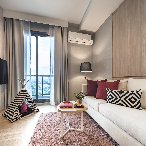 เมื่อเดินเข้ามาภายในห้องก็รู้สึกถึงความผ่อนคลาย สบายในการอยู่อาศัยมากขึ้น ด้วยการออกแบบที่โปร่งโล่ง เน้นโทนสีอบอุ่นสบายตา และมีพื้นที่ใช้สอยที่ยืดหยุ่น ภายใต้คอนเซ็ปต์ Dynamic Living Space ตอบสนองรูปแบบการใช้ชีวิตที่ไม่อยู่นิ่ง กับการตกแต่งด้วยเฟอร์นิเจอร์ที่ออกแบบพิเศษ สามารถปรับ พับ เก็บ