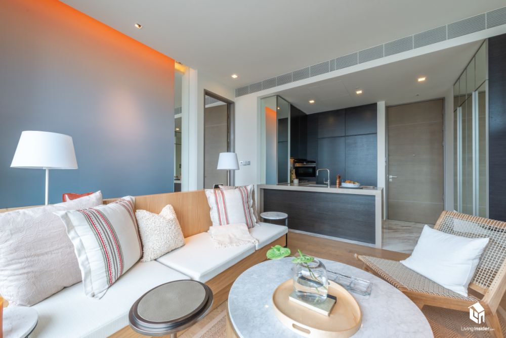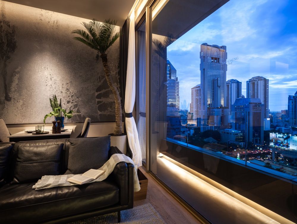 ตัวอย่างการสะท้อนความงามของการตกแต่งผนังอาคารด้วยวอลเปเปอร์ ที่เรียกว่าเป็น Wall Art ที่ผ่านกระบวนการคิดและเลือกสรรจากการมองแสงอาทิตย์อัสดงในกรุงเทพฯ สู่การเลือกใช้ Calico Wallpaper จากนิวยอร์ก คอลเล็กชั่น “ออโรรา (Aurora)” บนผืนผนังห้องในคอนโดมิเนียม “ศาลาแดง วัน” ฝั่งทิศตะวันตก เพื่อเก็บความงามที่เปรียบดั่ง “งานศิลปะ” ผ่านสีสันของดวงอาทิตย์ยามจะลาลับขอบฟ้า ความตระการตาของแสง ที่สื่อถึงอารมณ์ต่าง ๆ เปลี่ยนไปตามแสงแห่งวัน ลงบนผนังห้องได้อย่างพอดิบพอดี