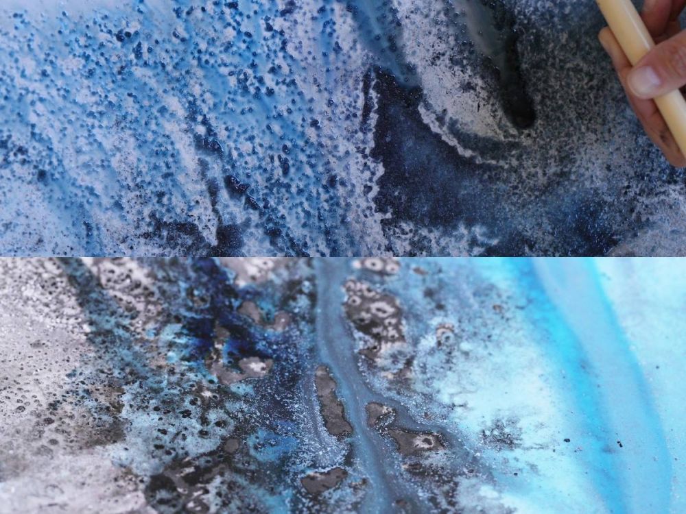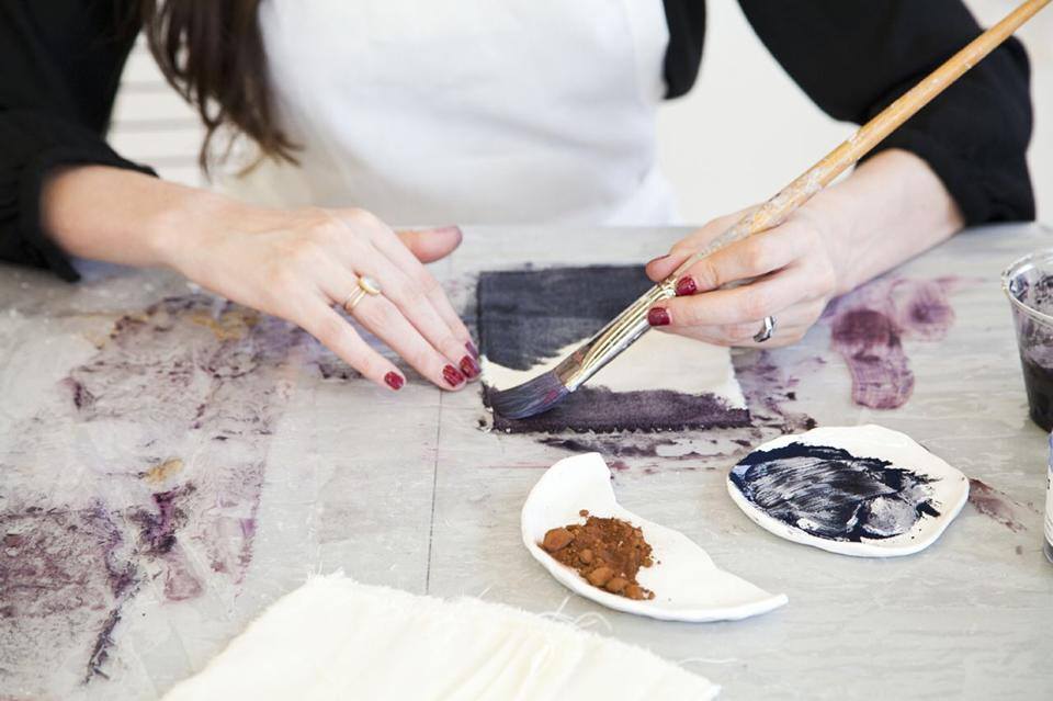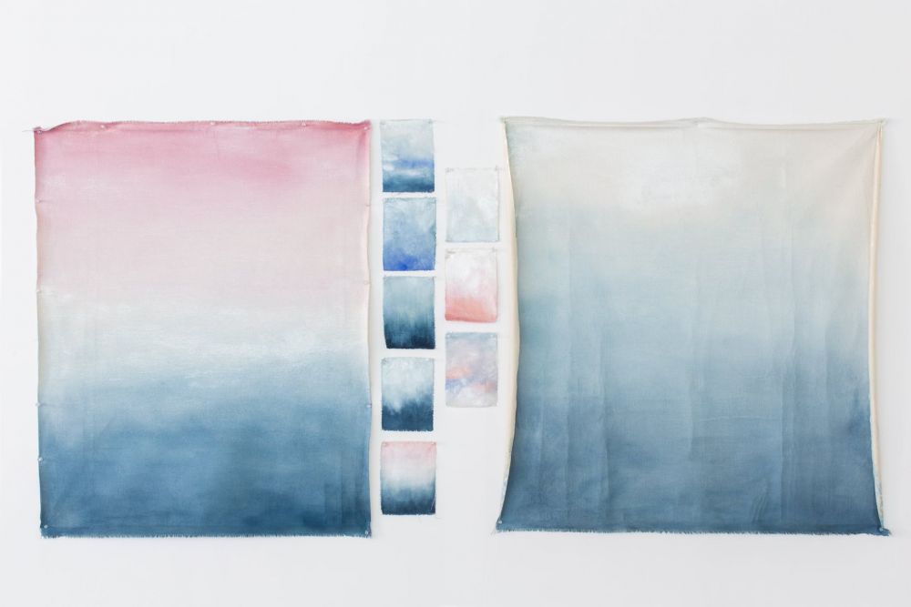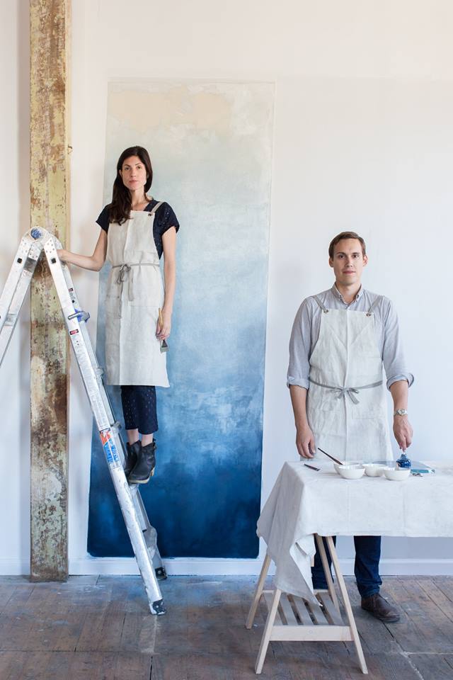 แต่กว่าจะออกมาเป็นวอลเปเปอร์ สักหนึ่งชิ้น Rachel and Nick Cope ดีไซน์เนอร์และผู้ก่อตั้งแบรนด์ Calico Wallpaper ค้นคว้าทดลองเทคนิคต่างๆ มากมาย จนได้เทคนิคการย้อมสีที่ได้แรงบันดาลใจมาจากเทคนิคการย้อมครามในประเทศญี่ปุ่นที่โด่งดังในสมัยเอโดะอย่าง “ชิโบริ” และ “ออมเบร” หรือการไล่สี ก่อนถ่ายทอดสู่ผ้าลินินออร์แกนิก ผ่านสีสันที่มีความเรียบง่าย แต่ในขณะเดียวกันก็ซับซ้อน เหมือนท้องฟ้าที่เปลี่ยนสีตลอดทั้งวัน
