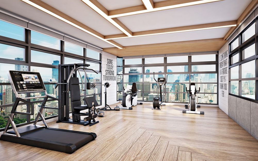 เติมเต็มเวลาดีๆ ด้วย Sky Fitness พร้อมเครื่องออกกำลังกายครบครัน ตัวห้องเป็นกระจกใสแผงใหญ่ ทำให้ดูโล่ง โปร่ง สบาย รับวิวได้รอบด้านเลย
