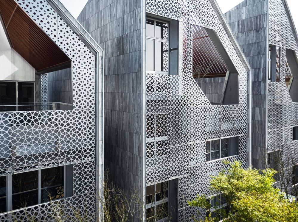 ซึ่งการมีช่องว่างระหว่างบ้านก็มีข้อดีอีกข้อหนึ่งคือช่วยให้แสงส่องผ่านไปถึงทุกส่วนในตัวบ้าน อีกทั้งการดีไซน์ฟาซาดก็สอดคล้องกับตัวบ้าน นอกจากจะทำหน้าที่ไว้บังสายตาจากภายนอกเพื่อความเป็นส่วนตัวแล้ว ยังเป็นหนึ่งในส่วนที่ช่วยเสริมให้อากาศหมุนเวียนภายในตัวบ้าน และยังสามารถชมทิวทัศน์ภายนอกไปพร้อมๆ กันได้อีกด้วย