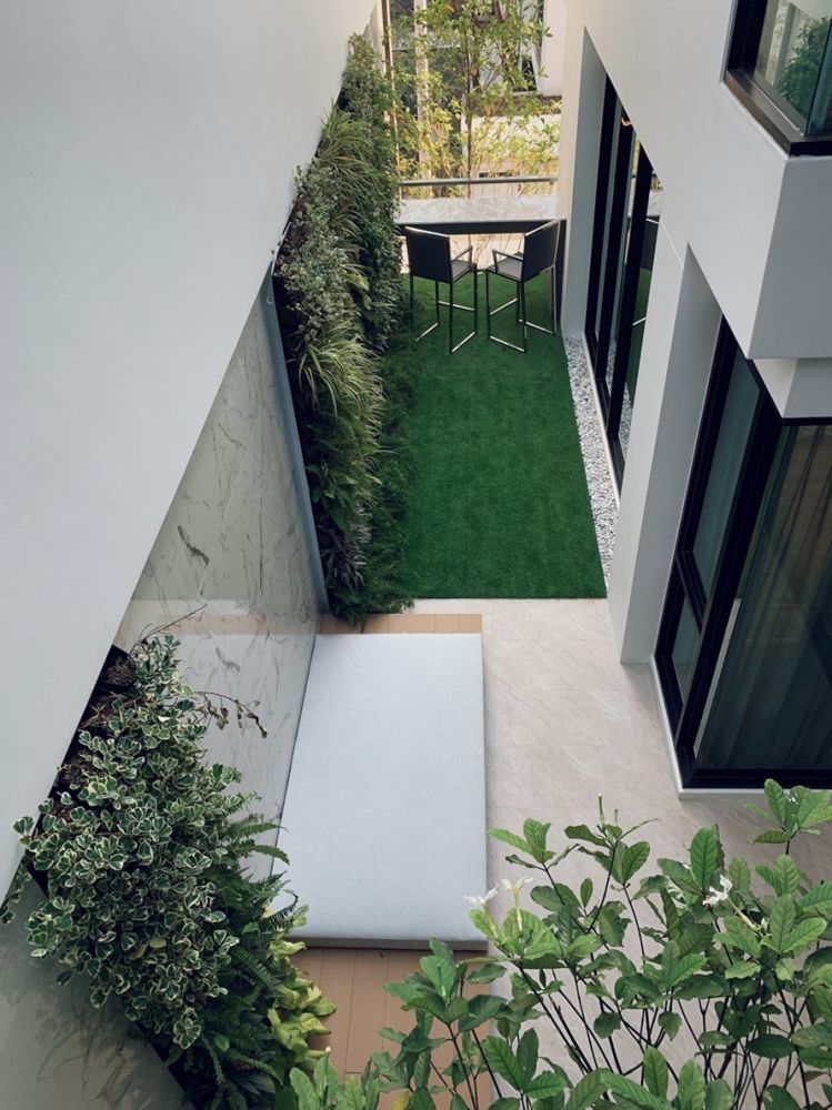 ชั้นล่าง Living Zone มีพื้นที่สำหรับห้องนั่งเล่นและส่วนครัว ผู้อาศัยสามารถปรับเป็น Home Office ขนาดเล็กได้ครับ อีกส่วนเป็น Natural Scene Terrace สวนหลังบ้านสามารถจัดสวนเล็กๆ นั่งพักผ่อนทำกิจกรรมร่วมกับครอบครัว ส่วนชั้นลอย (Mezzanine) สามารถจัดเป็นมุมพักผ่อนหรือห้องนั่งเล่น รวมถึงมีระเบียงในตัว