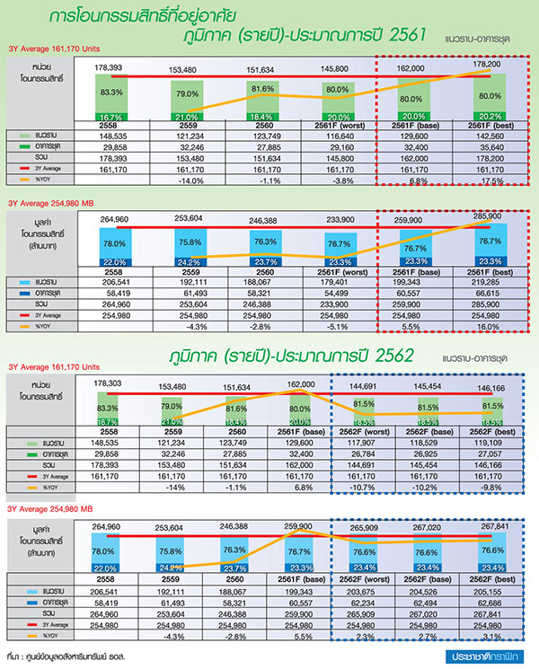 โดยมาตรการแบงก์ชาติที่จะมีผลบังคับใช้ต้นไตรมาส 2/62 คาดว่าส่งผลให้ยอดโอนกรรมสิทธิ์และสินเชื่อที่อยู่อาศัยมีการเร่งตัวอย่างเห็นได้ชัด