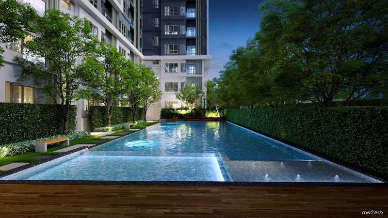 ด้านล่างภาพจำลองสระว่ายน้ำของโครงการที่มาพร้อมกำแพงธรรมชาติด้วยพื้นที่สีเขียวตั้งแนวราบและแนวตั้งที่ช่วยบดบังสายตาเพิ่มความเป็นส่วนตัวในทุกการพักผ่อน